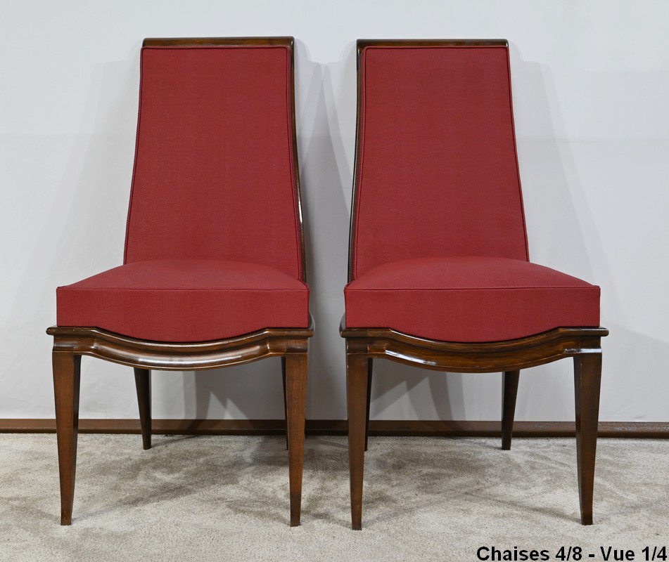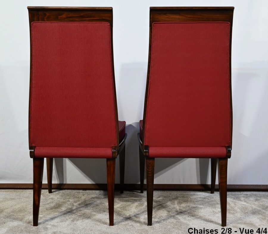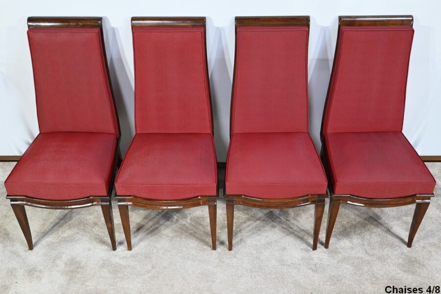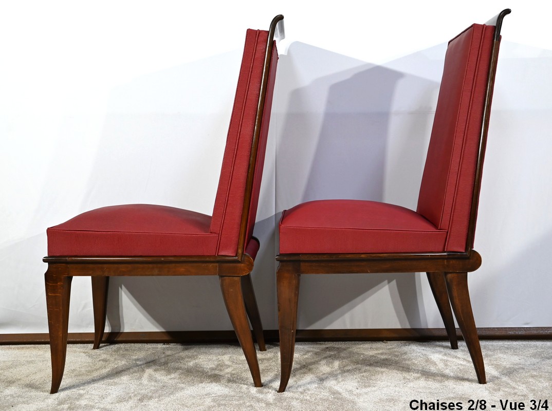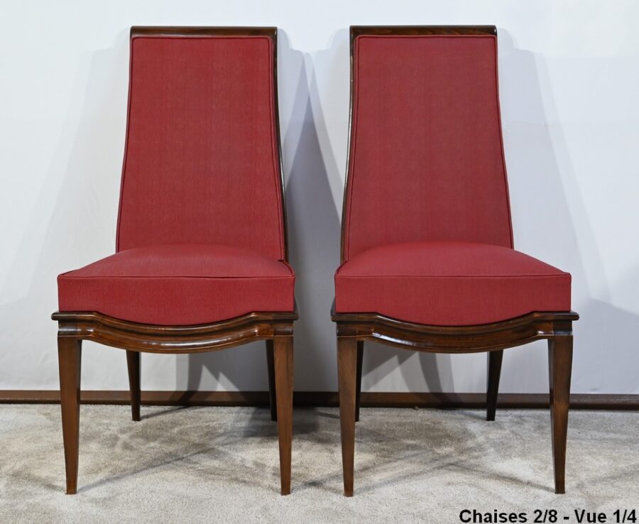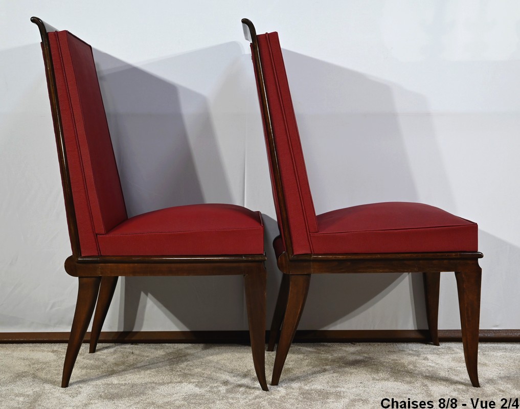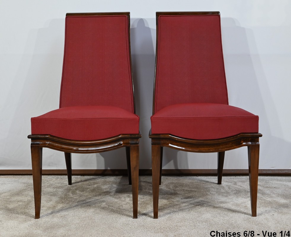 Suite de 8 Chaises en Hêtre Massif, attribuée à J.Leleu, Art Déco – 1940