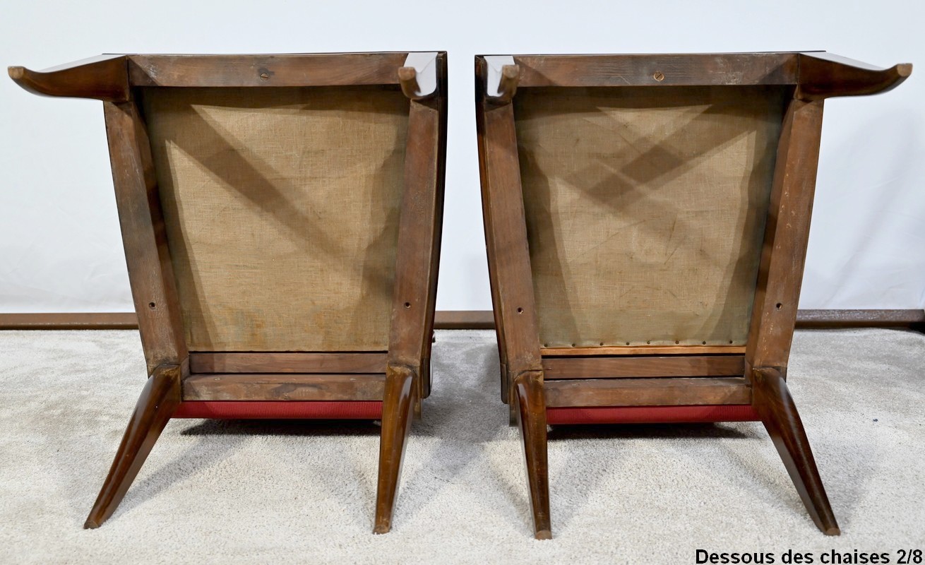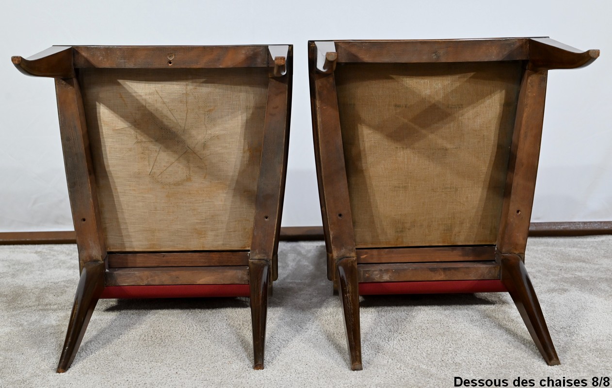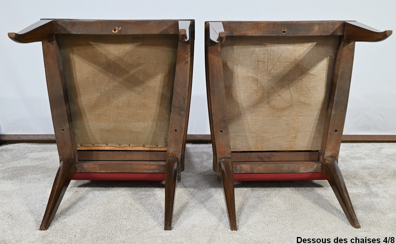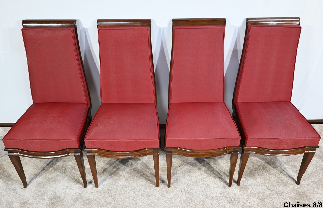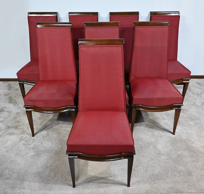 Suite de 8 Chaises en Hêtre Massif, attribuée à J.Leleu, Art Déco – 1940