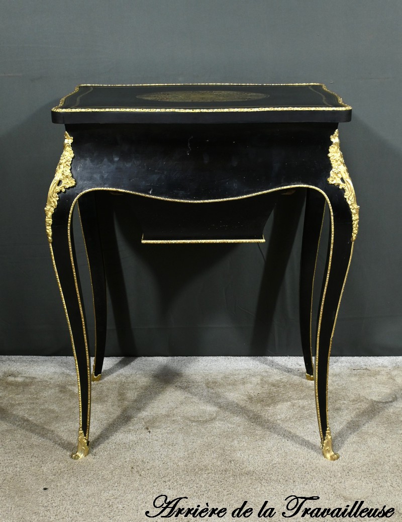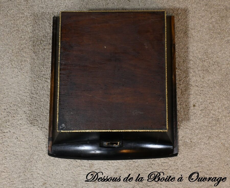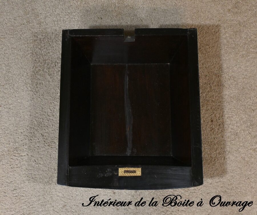 En plus de cet espace, la travailleuse dispose d’une boîte à ouvrage coulissante, idéale pour ranger divers accessoires.