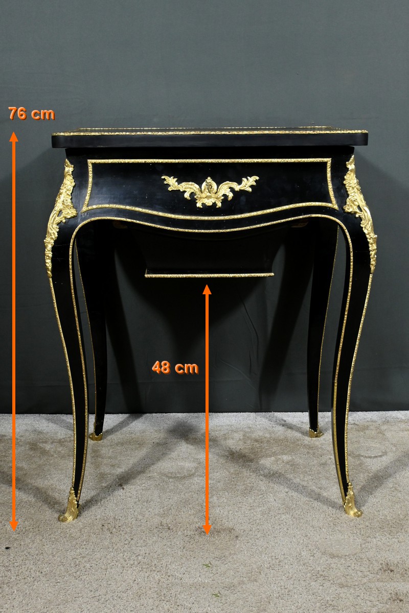 Le meuble incarne parfaitement l’élégance et le savoir-faire artisanal du XIXe siècle, alliant fonctionnalité et esthétique raffinée.