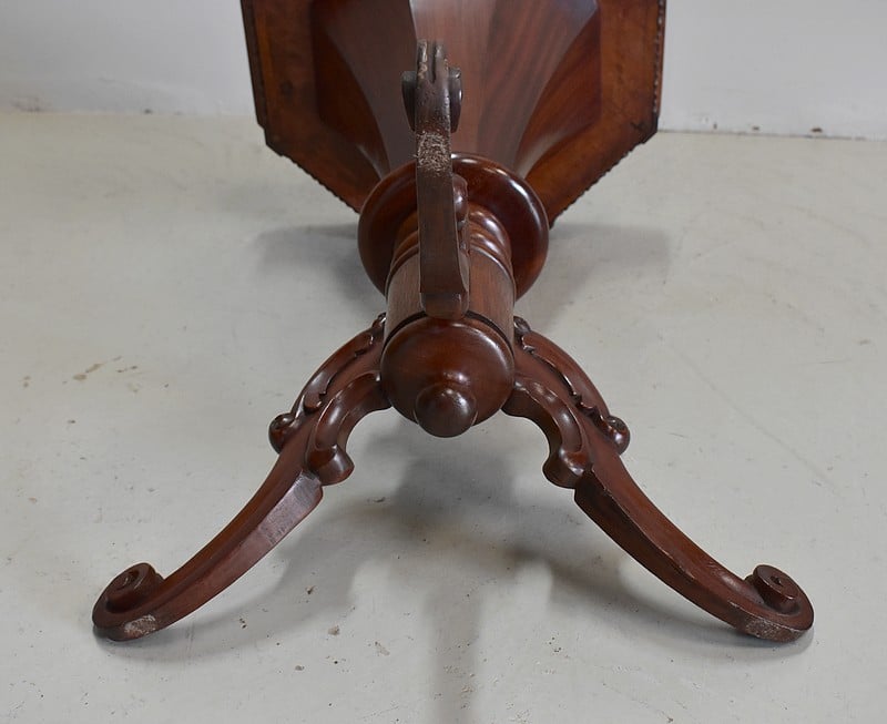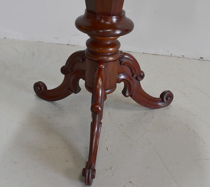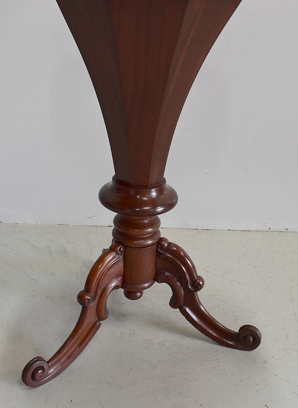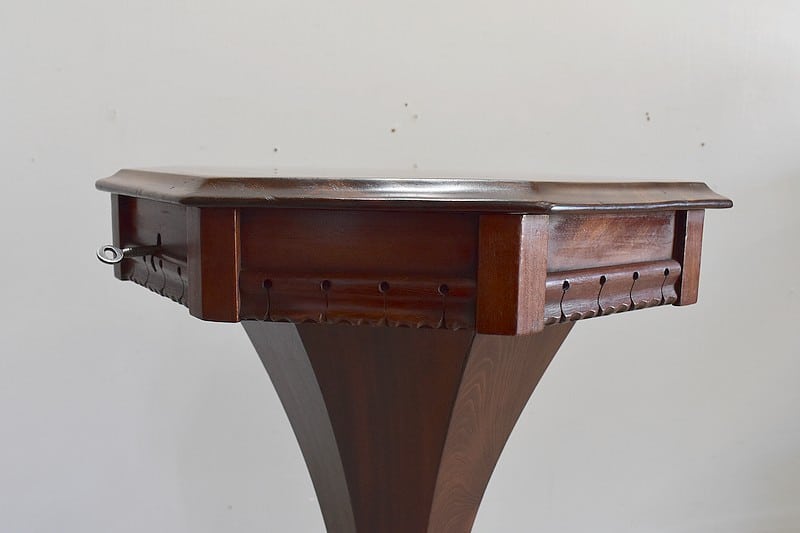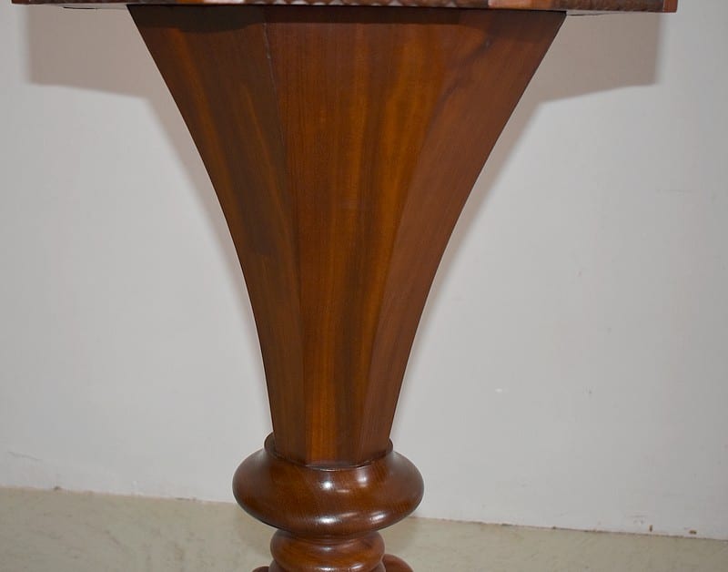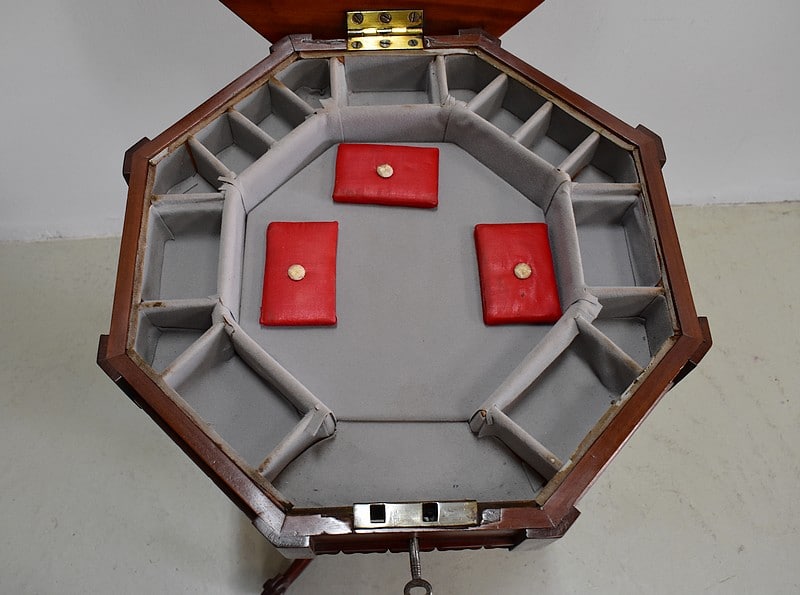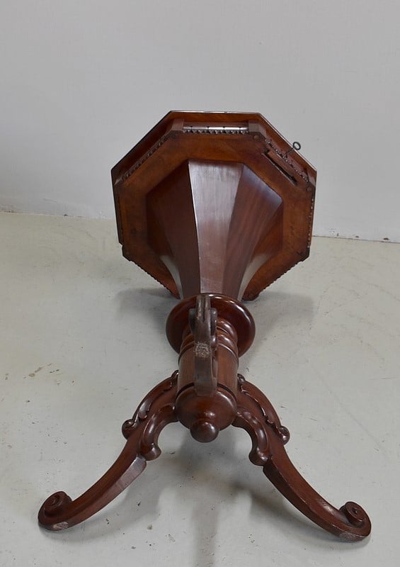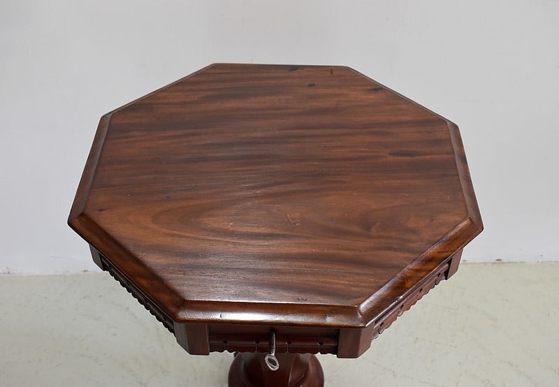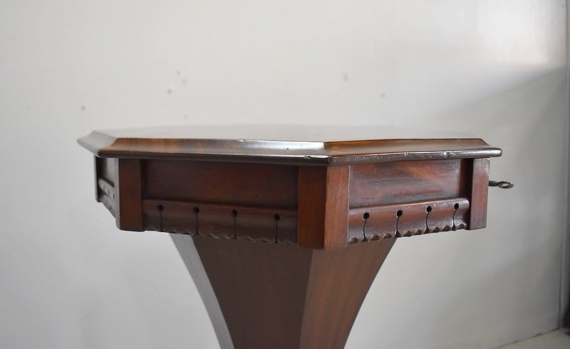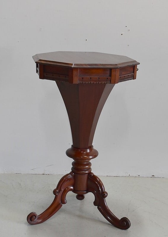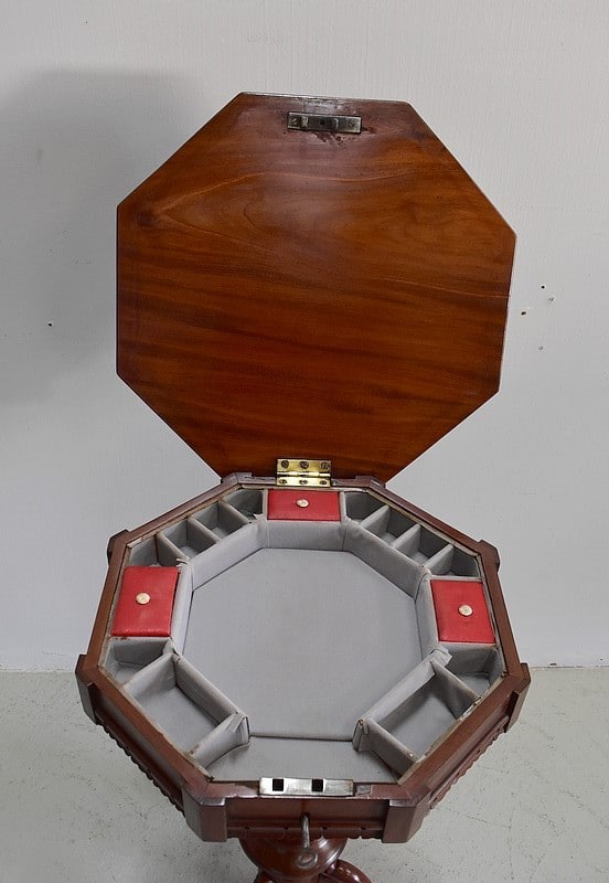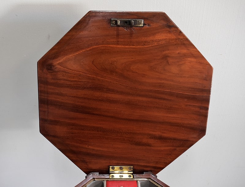 Originale travailleuse de forme octogonale en Acajou massif et placage d’acajou.