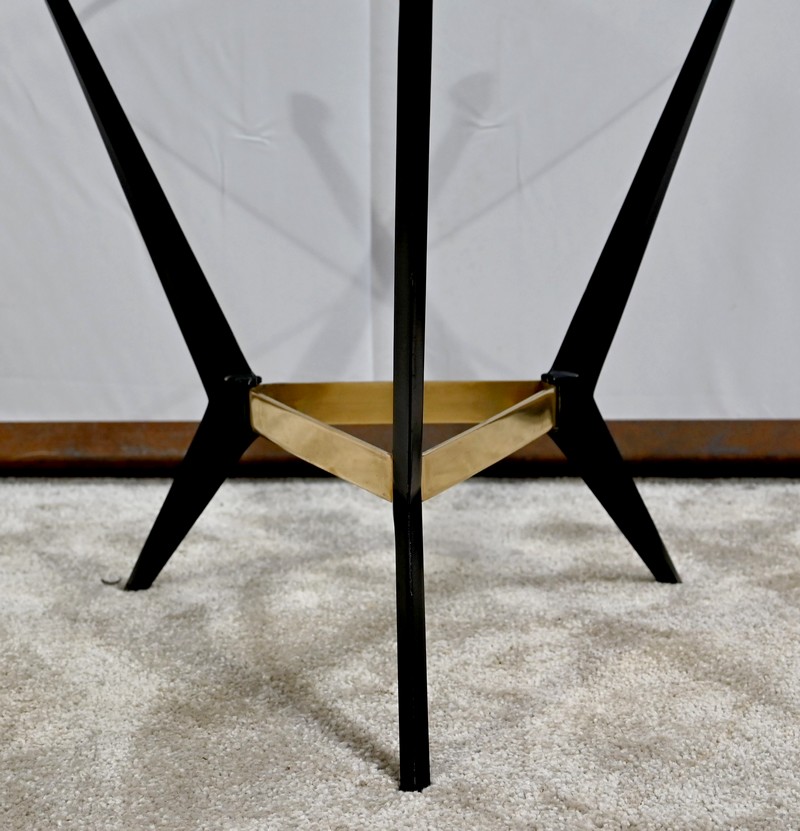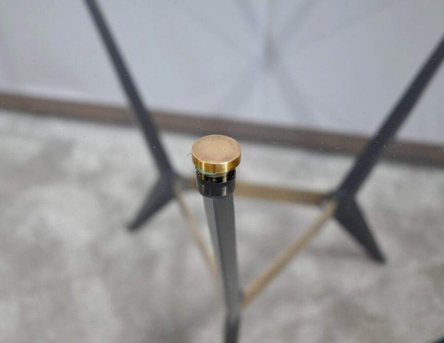 Chaque pied est vissé sur un élément métallique doré renforçant l’ensemble.