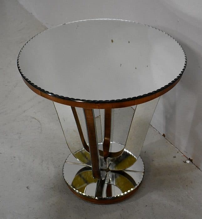 Petite Table de Salon, en Miroirs et Noyer – 1940