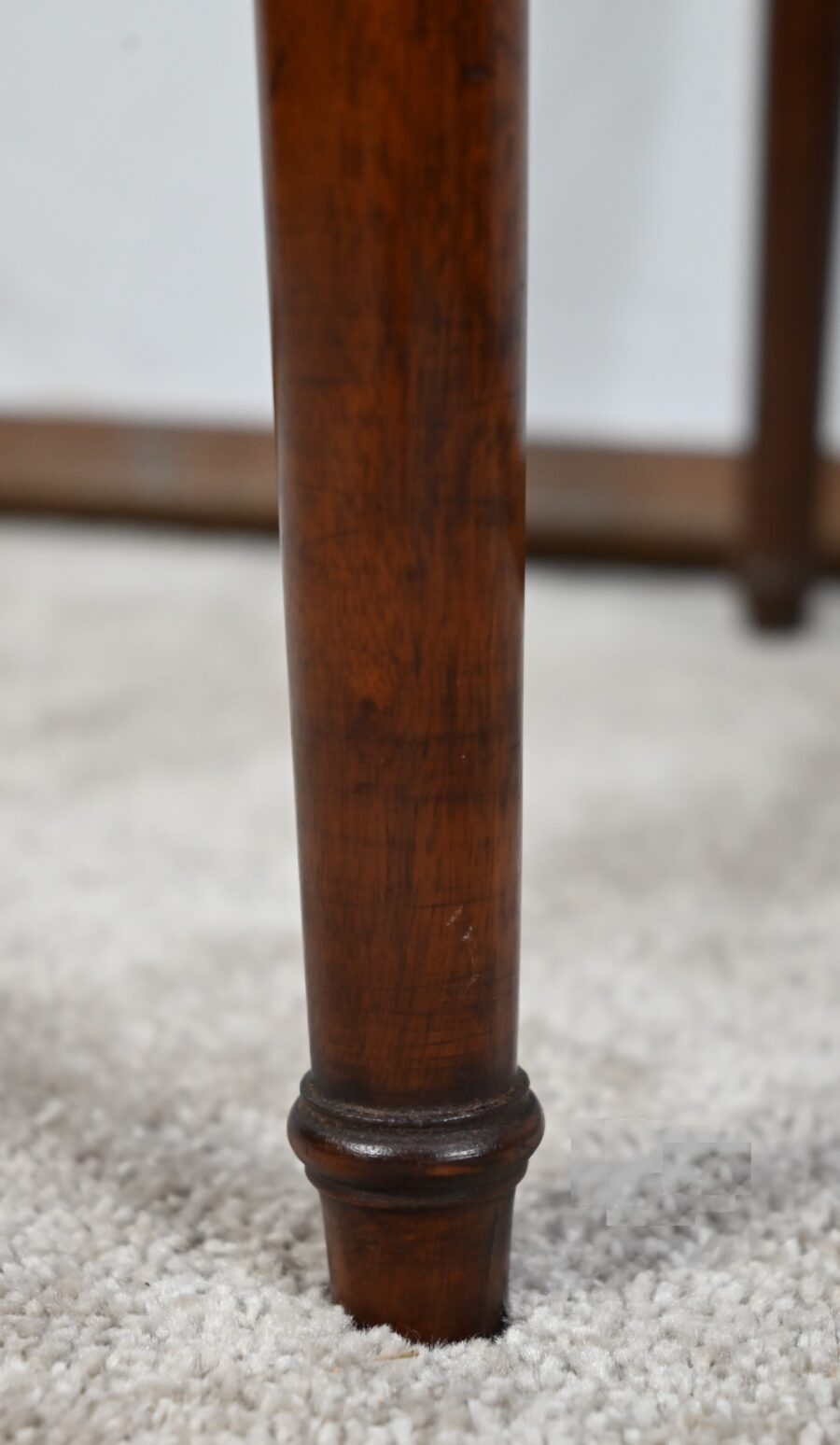 L’ensemble repose sur quatre pieds tournés en fuseaux.