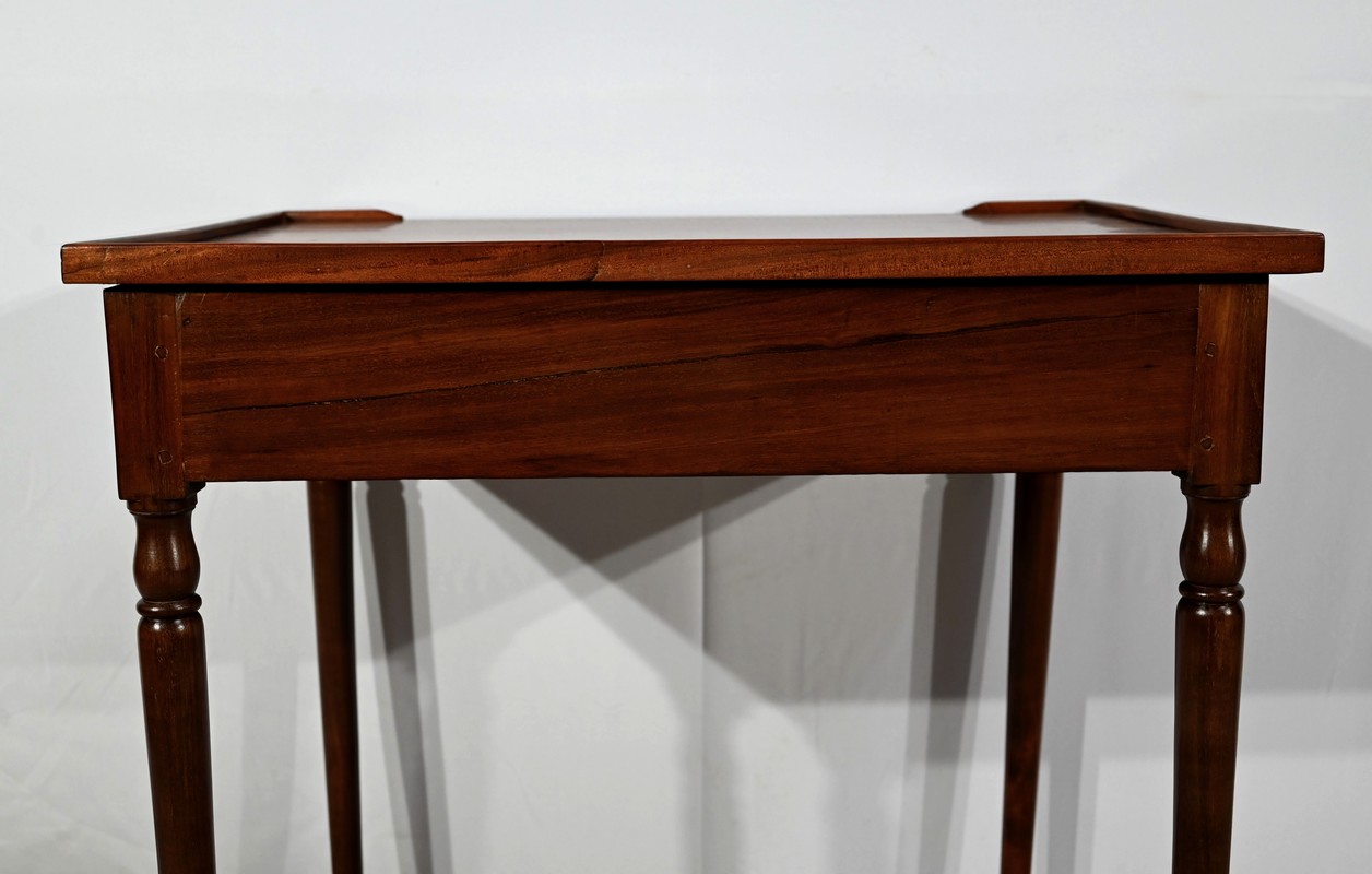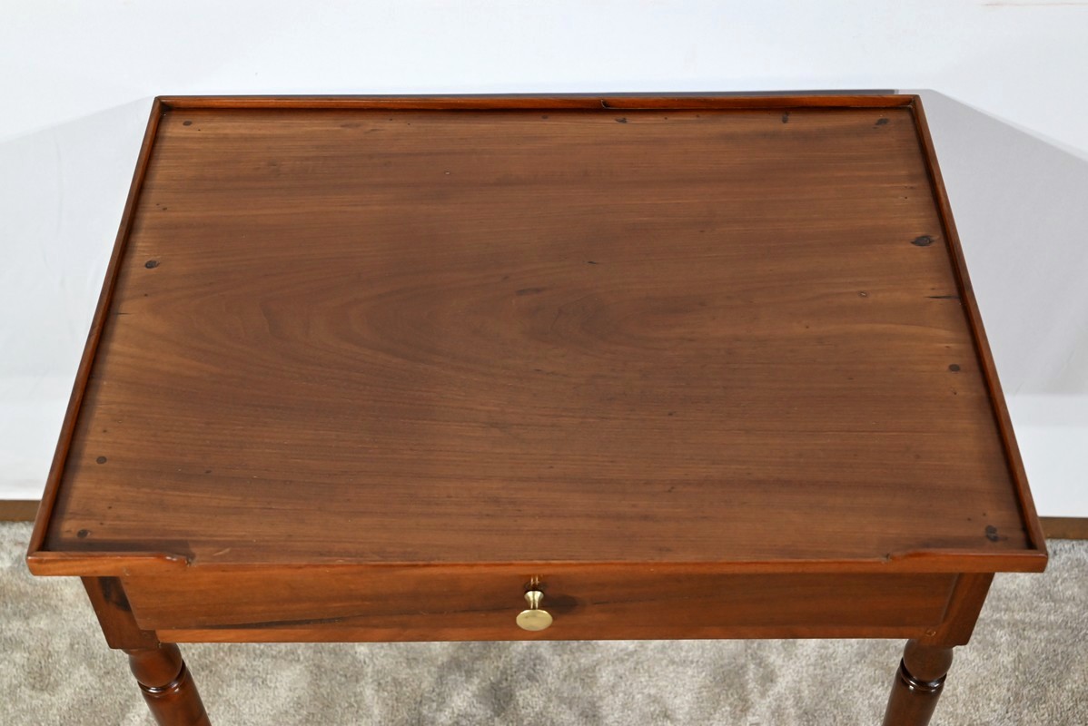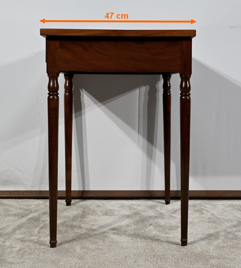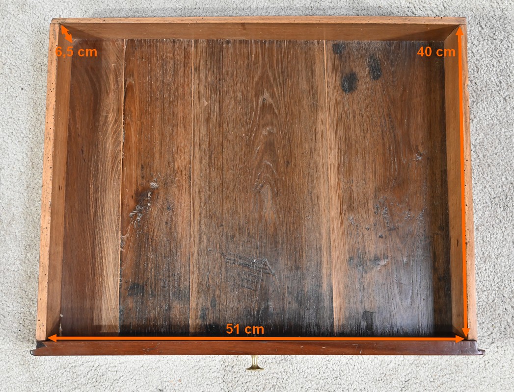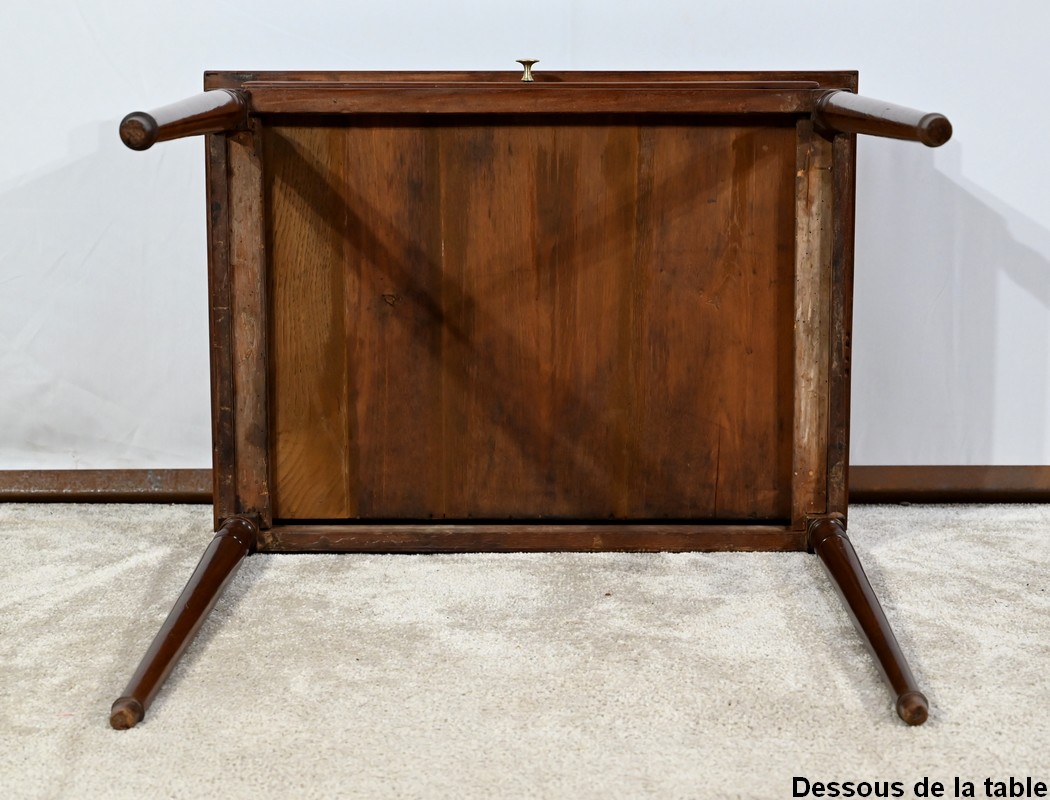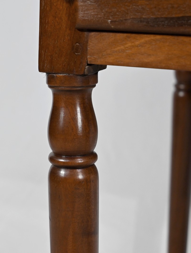 Cette charmante petite table d’époque Louis XVI plaira pour son dimensionnel raisonnable et son essence de qualité.