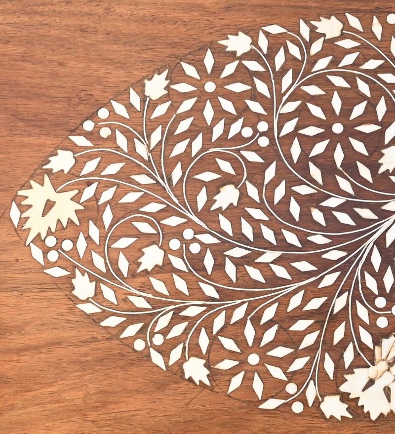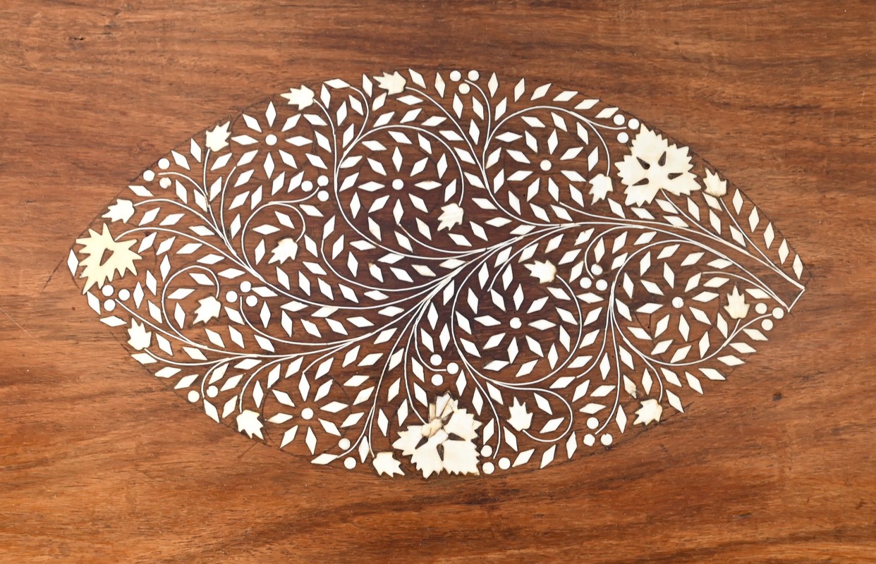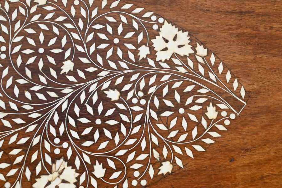 Le centre est incrusté d’une composition d’ivoire représentant un losange à décors végétale.