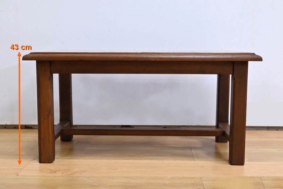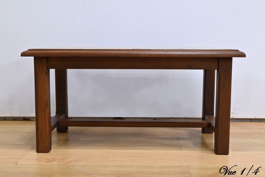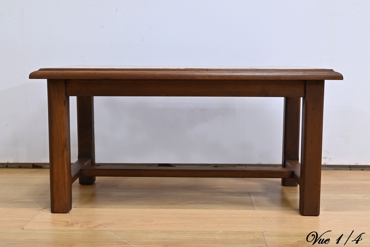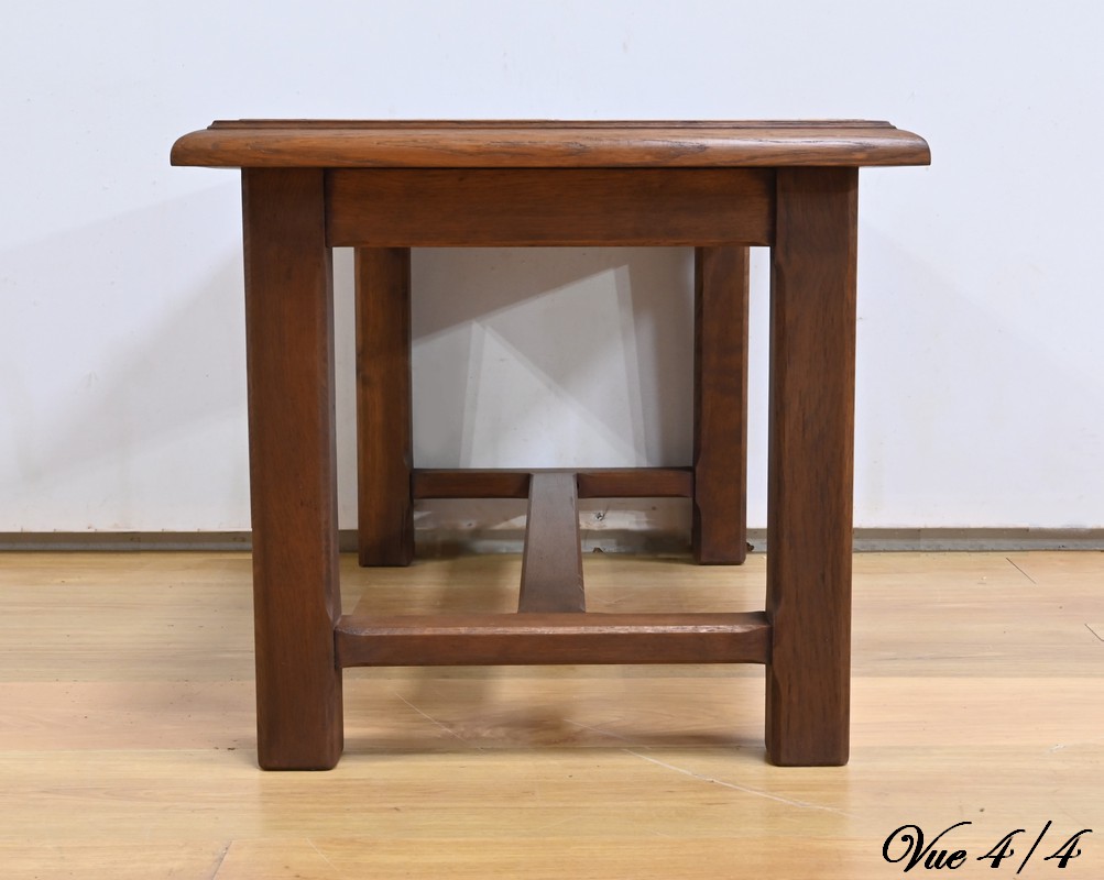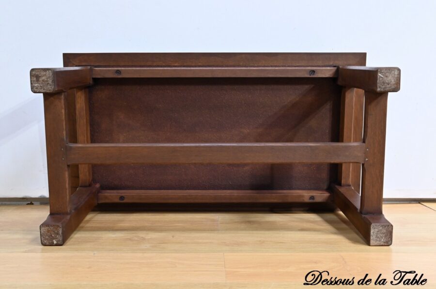 Les quatre pieds de la table, de section carrée, sont reliés par une entretoise en H, assurant une stabilité et une robustesse exemplaires.