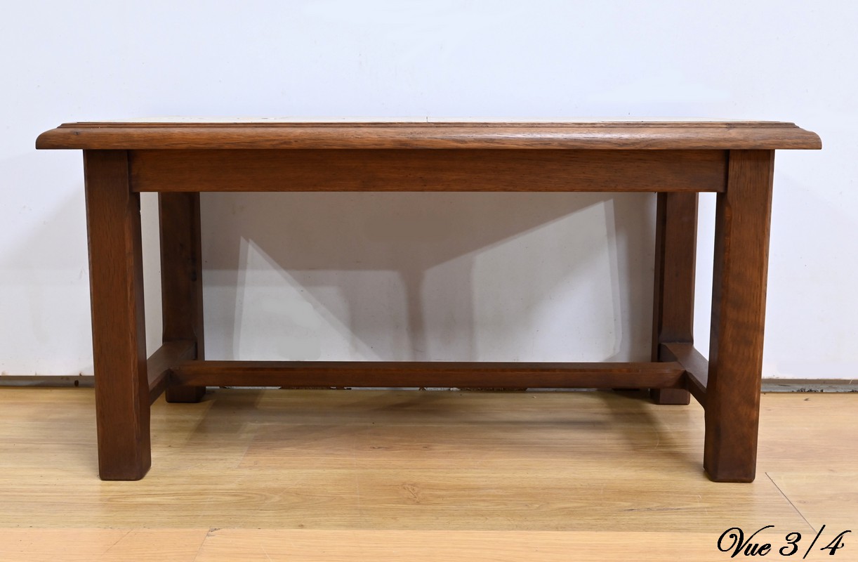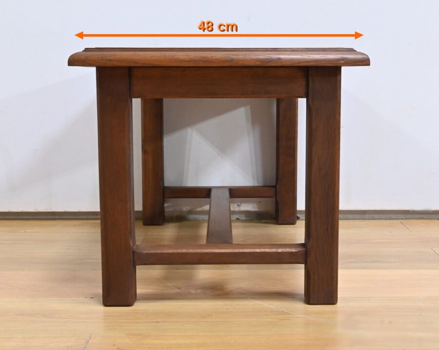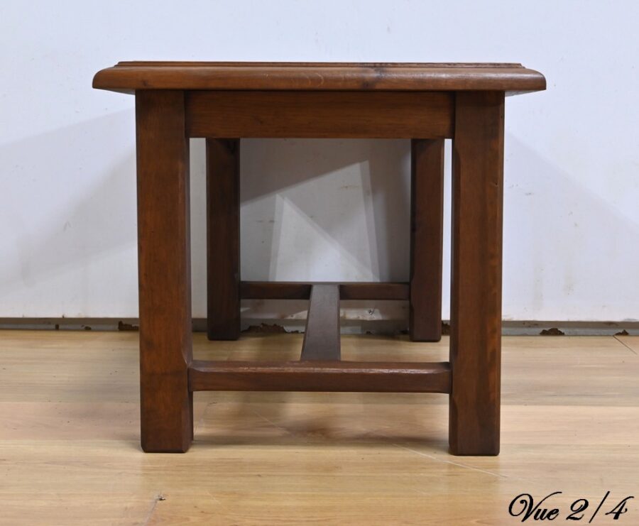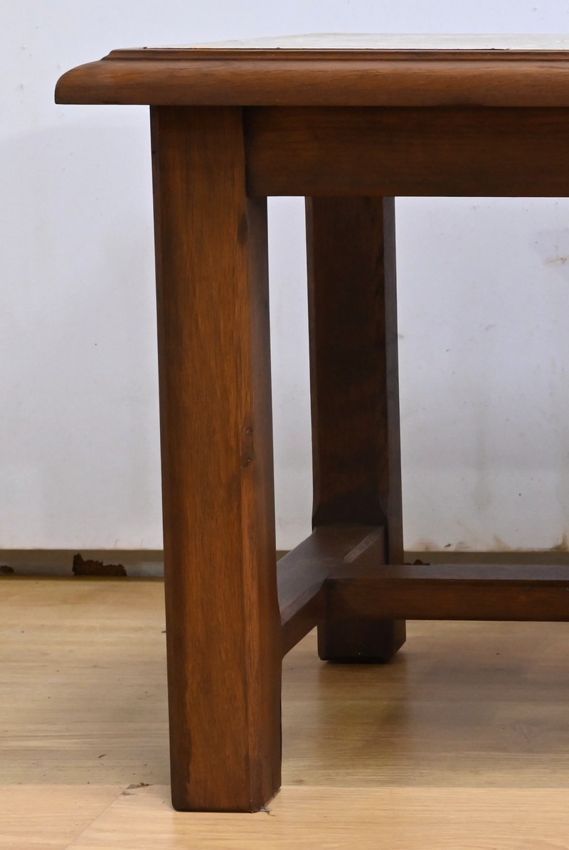 Les quatre pieds de la table, de section carrée, sont reliés par une entretoise en H, assurant une stabilité et une robustesse exemplaires.