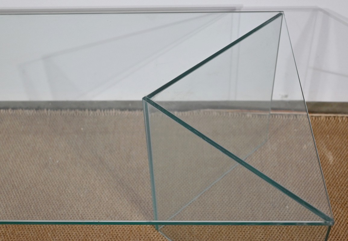 Cette table basse en verre, au design très épuré, s’harmonisera particulièrement bien dans un style actuel et moderne.