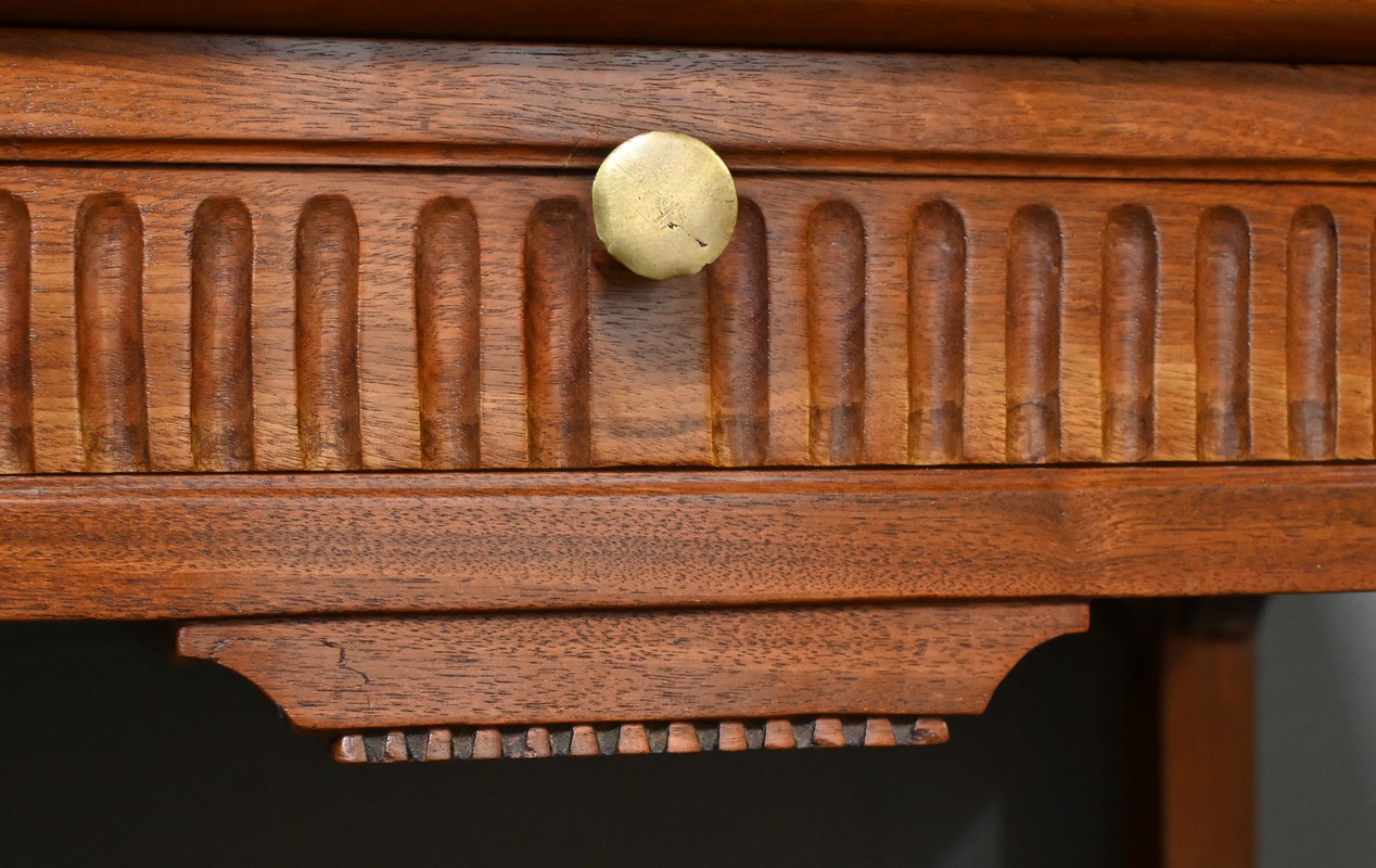 Cette table cabaret en acajou, datée du début du XIXᵉ siècle, s’inscrit dans la pure tradition du style Louis XVI, alliant rigueur des lignes et raffinement des détails.