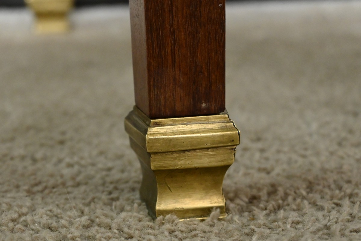 Les pieds fuselés, de section carrée, expriment la sobriété géométrique chère à Louis XVI.