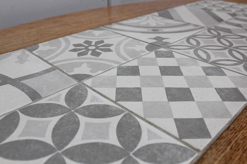 Cette Table se compose d’un plateau Ovale garni de douze carreaux Granités, en Céramique, aux motifs Gris tous différents les uns des autres. Avec ses 4.5 cm d’épaisseur, ce dessus inspire la Solidité.