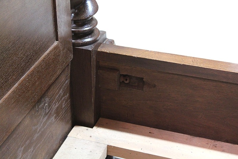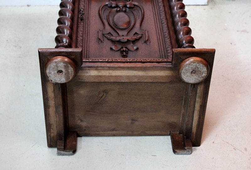 Elle repose sur 2 pieds boules aplaties avants et 2 pieds droits arrières et l’arrière est panneauté.