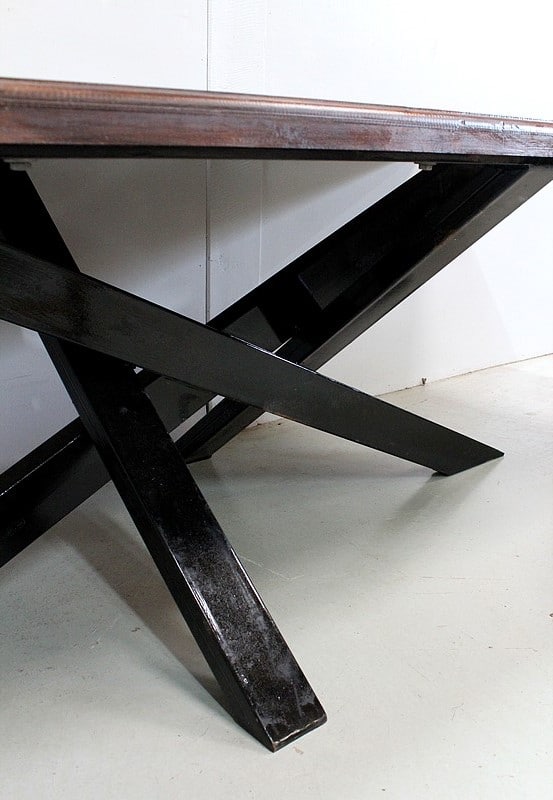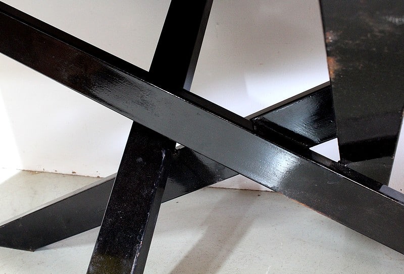 Ses quatre pieds inclinés, en métal Noir, s’entrecroisent pour un rendu asymétrique et moderne.