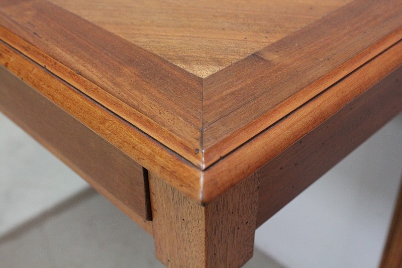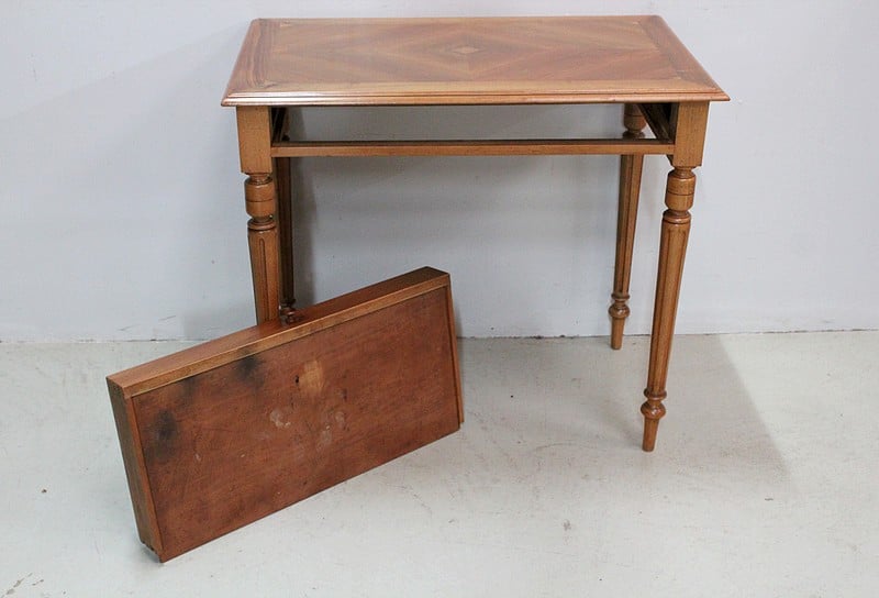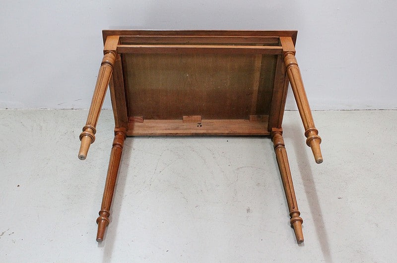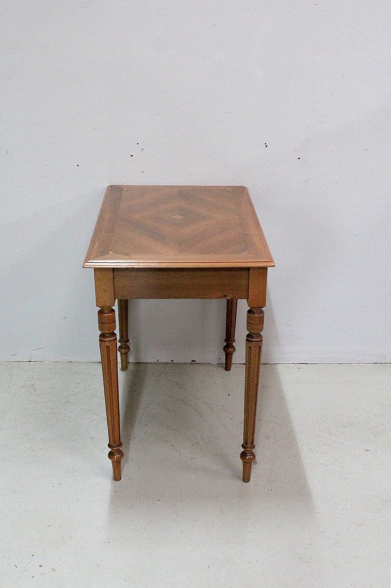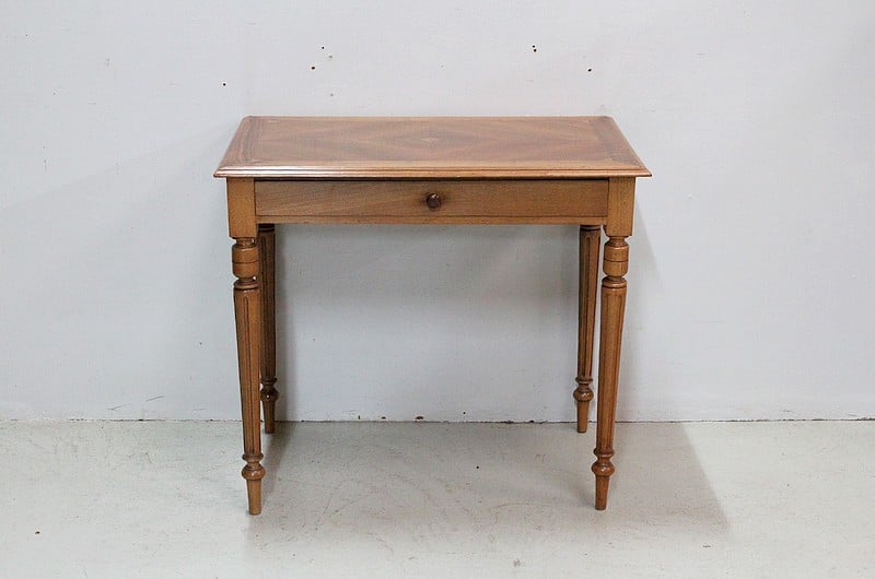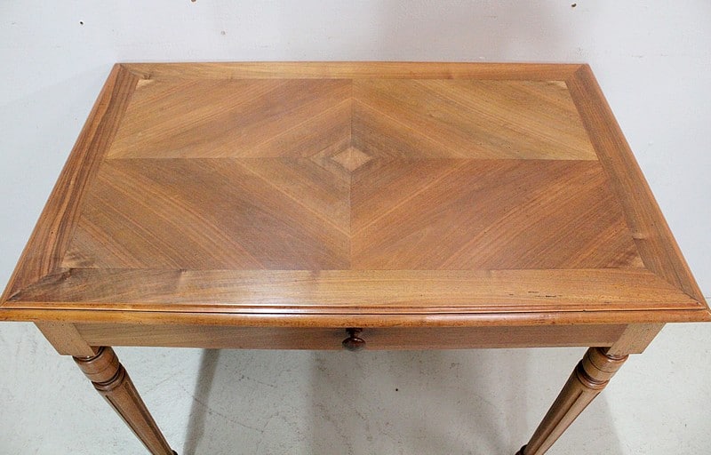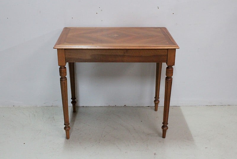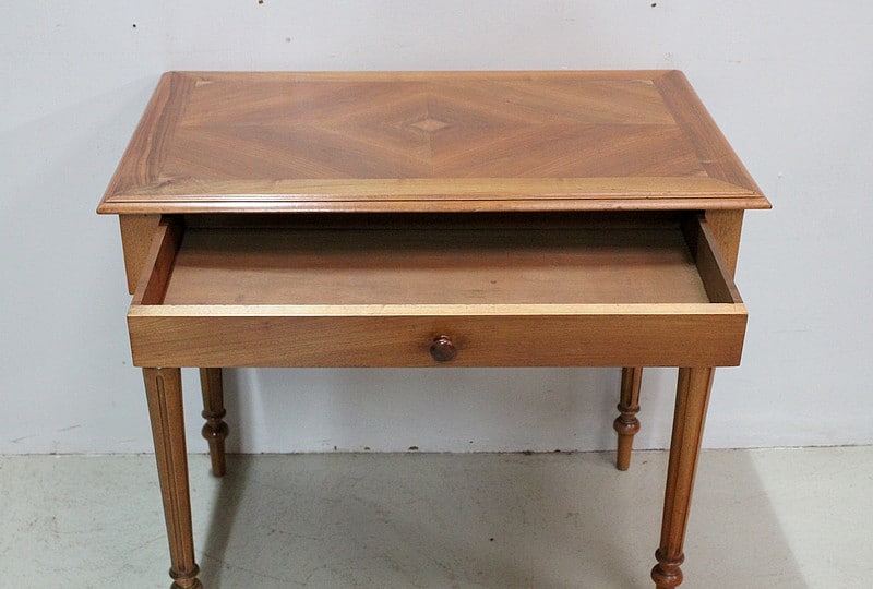 Mignonne petite table de chambre dans le goût Louis XVI en Noyer massif et placage de Noyer.