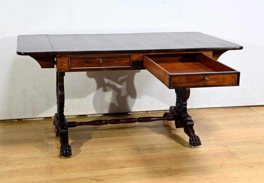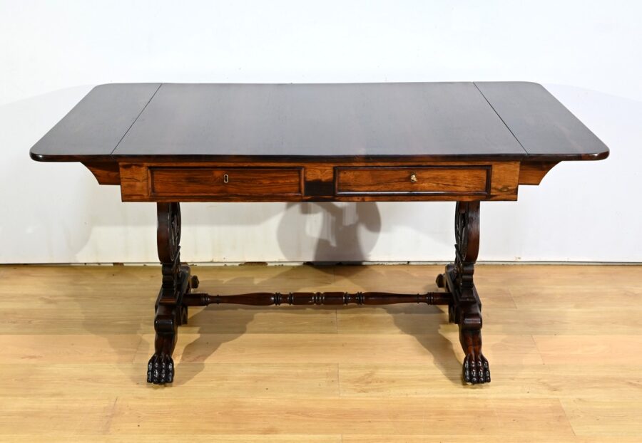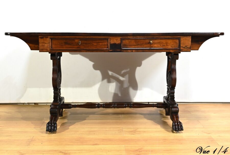 Table Bureau à Volets en Palissandre Massif, époque Restauration – Début XIXe