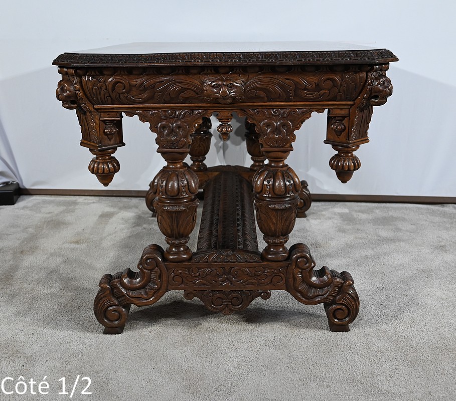 Table Bureau en Chêne, goût Renaissance Gothique – Fin XIXe