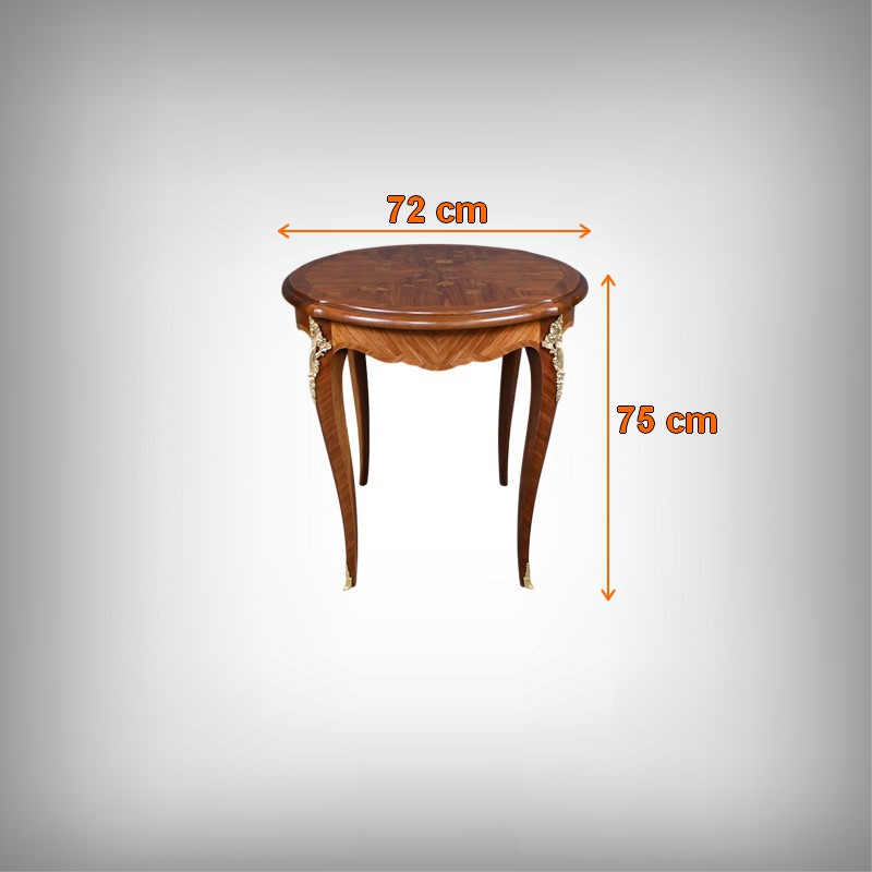 Pièce décorative autant que fonctionnelle, cette table incarne le charme et le savoir‑faire du mobilier d’inspiration XVIIIᵉ, où la virtuosité des marqueteurs et la délicatesse des bronzes se conjuguent pour créer une table de distinction.
