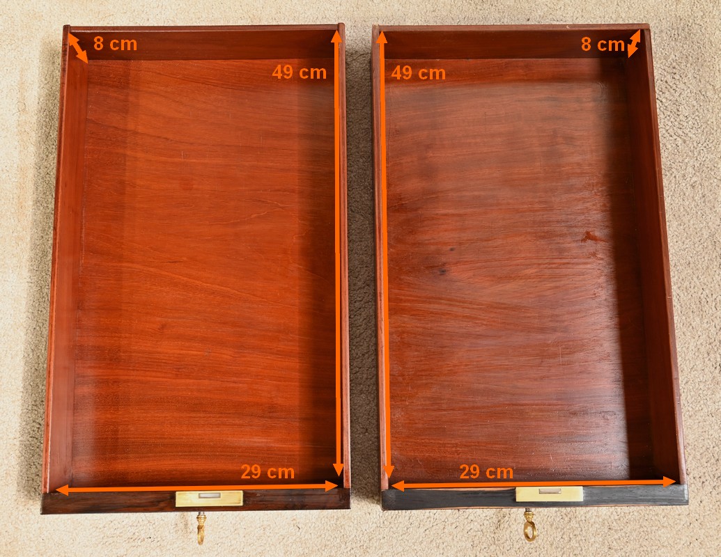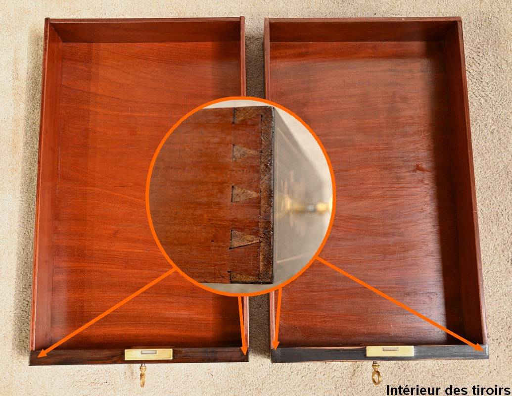 La ceinture présente deux longs tiroirs, indépendamment équipés de serrures fonctionnelles d’origine avec entrées et clés.