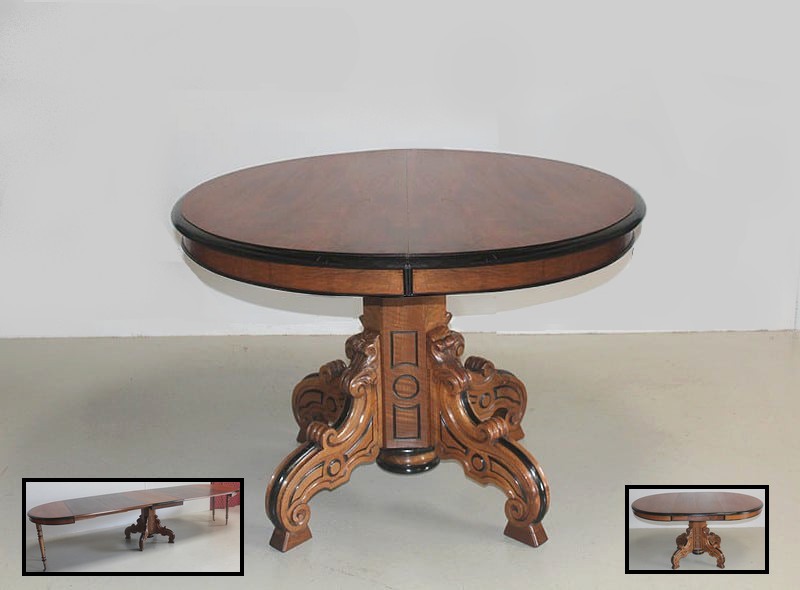 Grande Table-Guéridon dans le goût NAPOLÉON III en noyer, le plateau à bec de corbin rechampi noir.