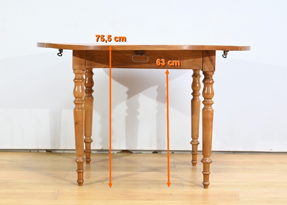 Cette table dispose de quatre allonges offrant au maximum plus du double de sa capacité, soit 12 à 14 couverts.