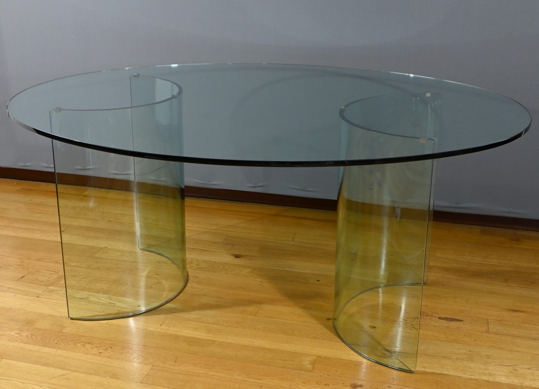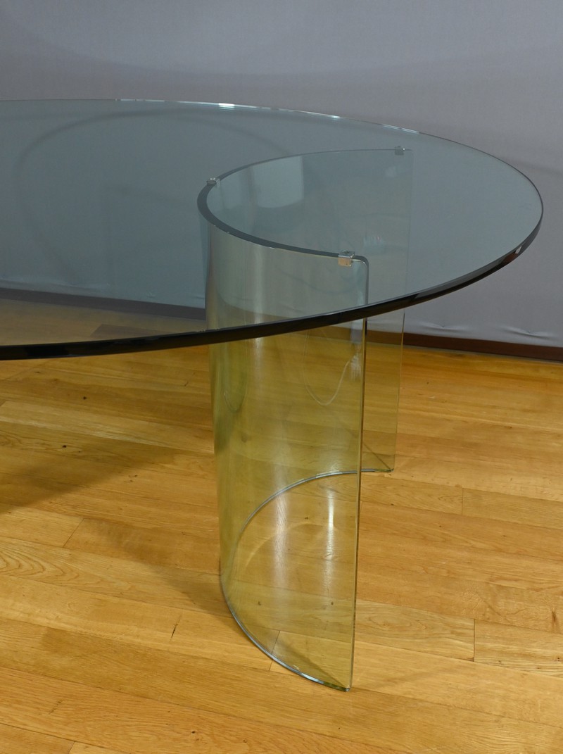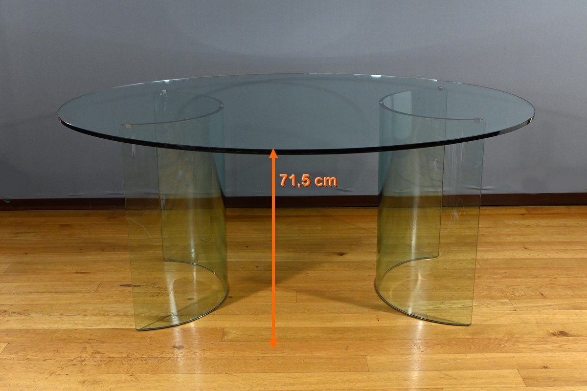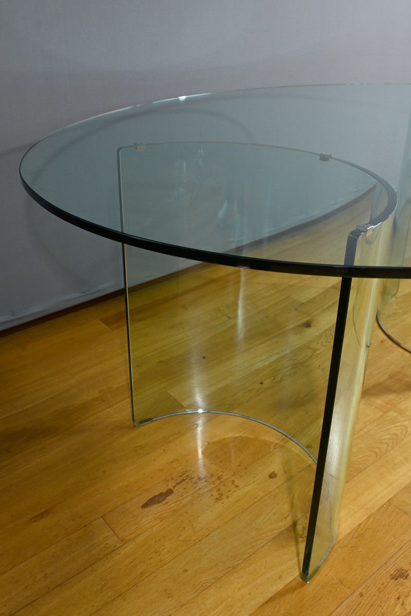 Cette table de salle à manger, attribuée à la maison italienne Fiam et datant de 1980, est une pièce exceptionnelle de design moderne.