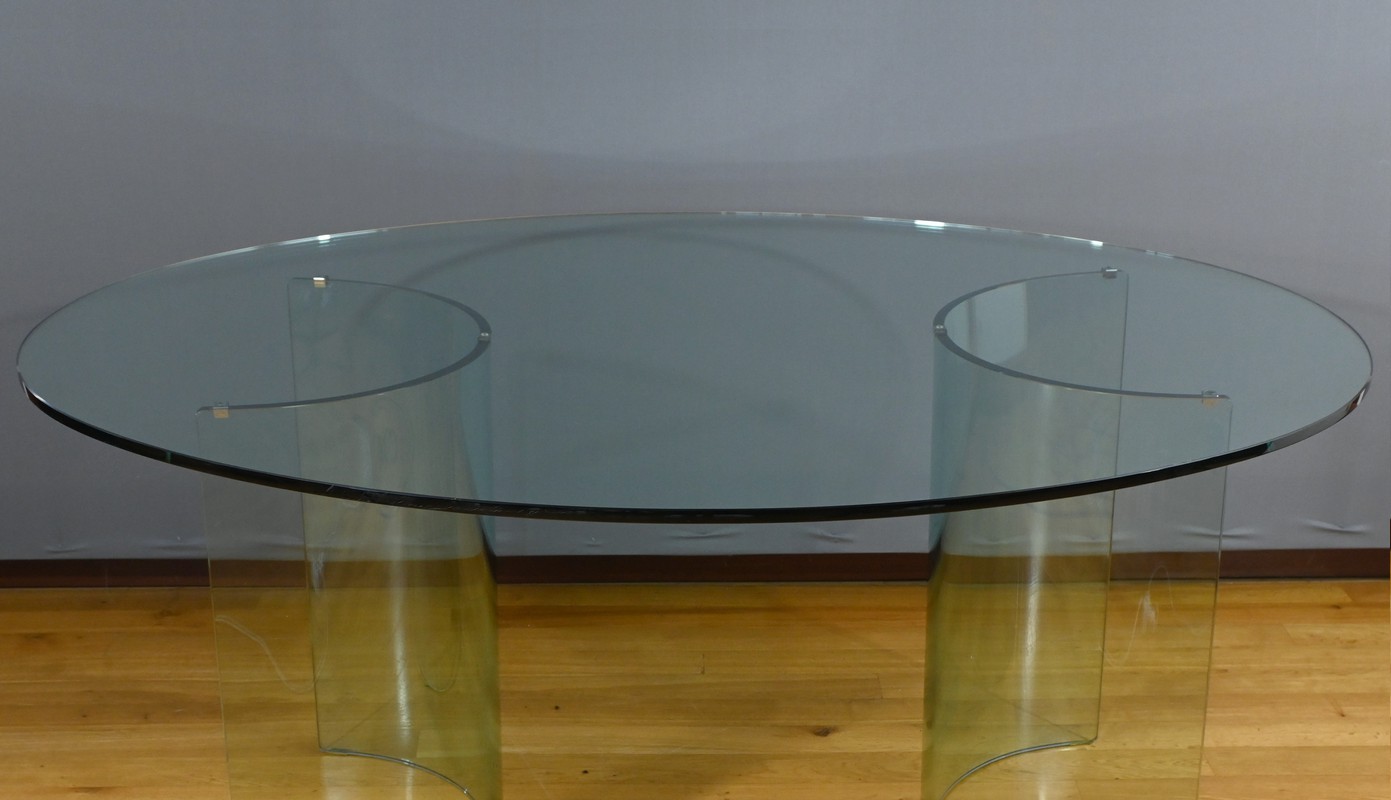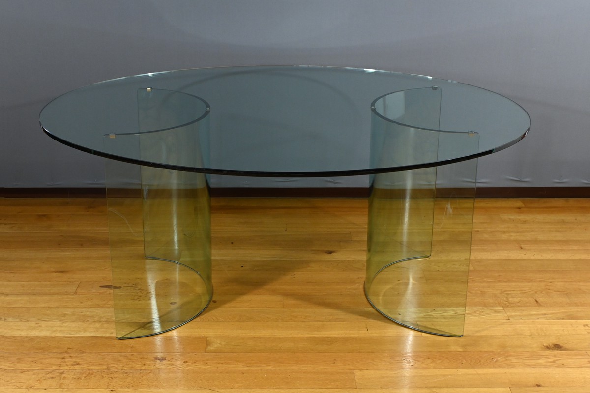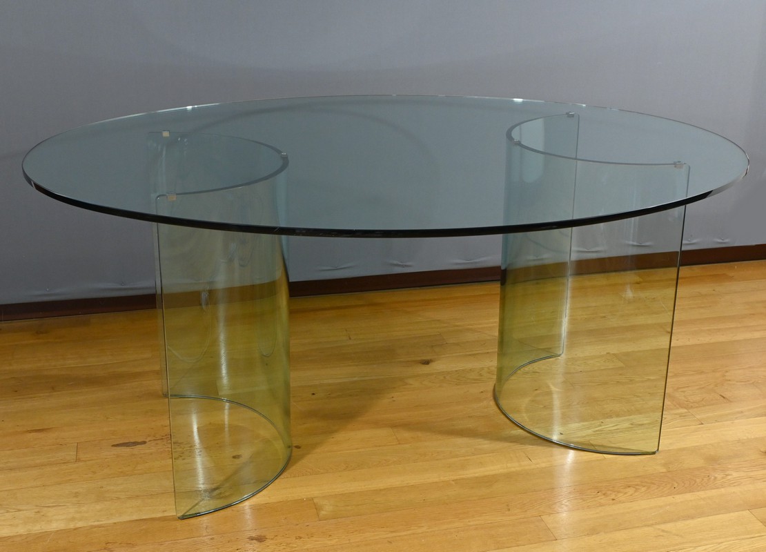 Cette table de salle à manger, attribuée à la maison italienne Fiam et datant de 1980, est une pièce exceptionnelle de design moderne.
