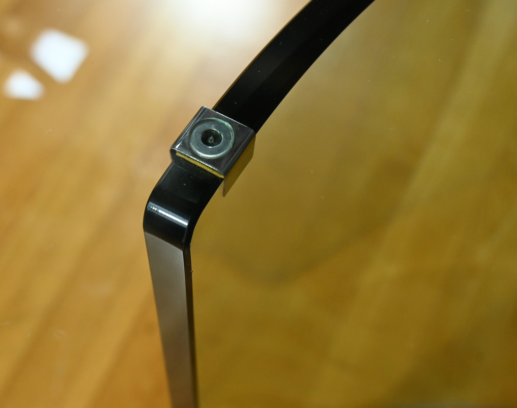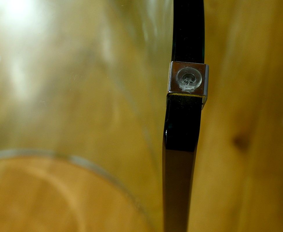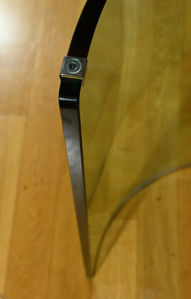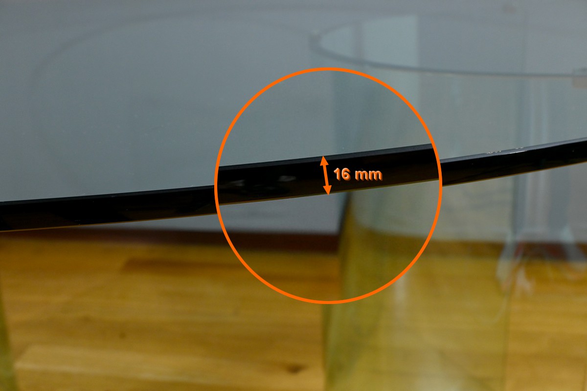 Les deux pieds en verre courbé, conçus dans l’esprit demi-sphère, ajoutent une touche artistique et sophistiquée à l’ensemble.