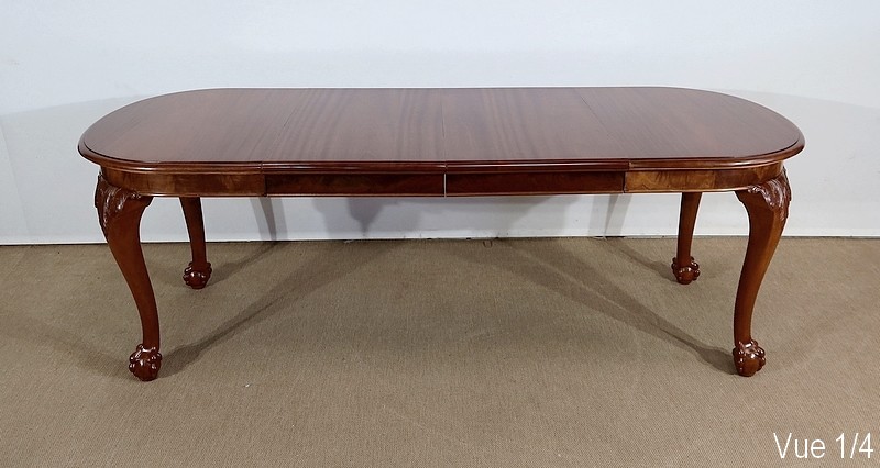 Importante table rectangulaire en acajou sculpté et mouluré de style Chippendale.