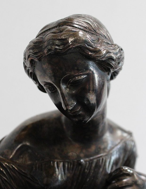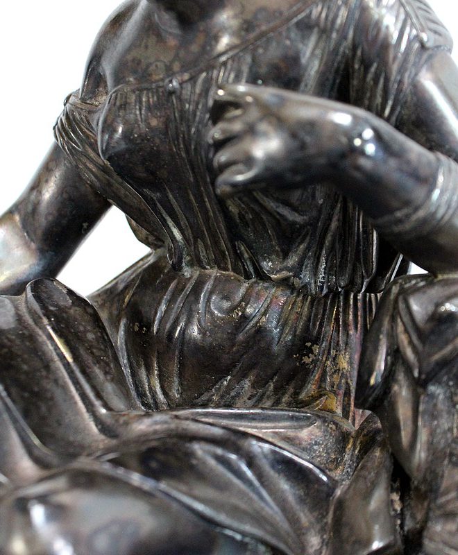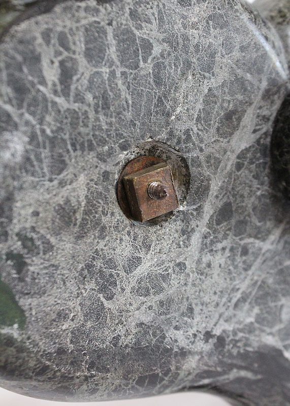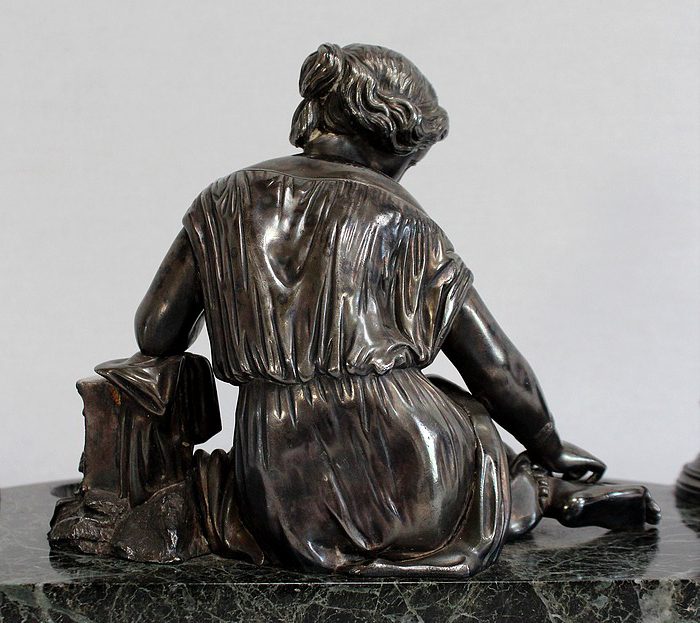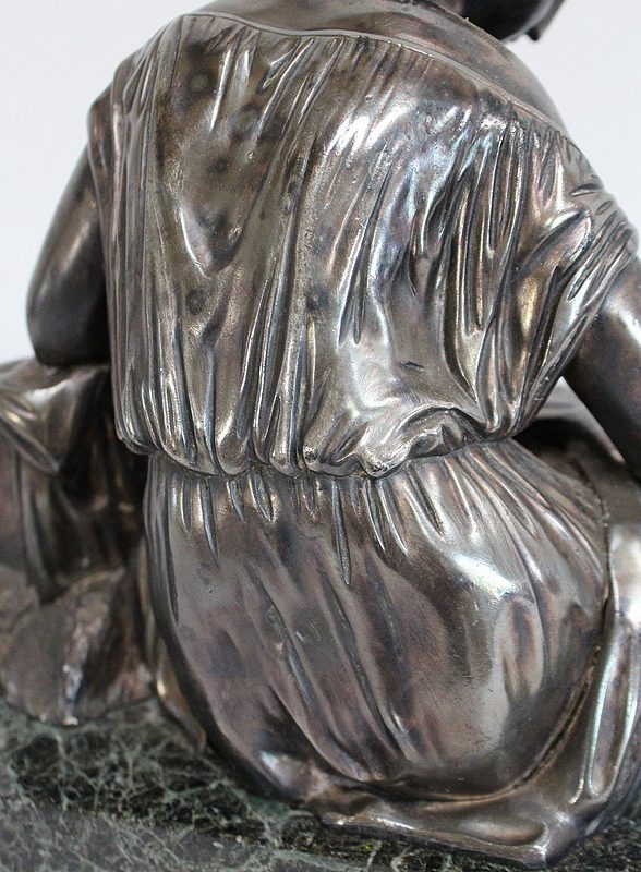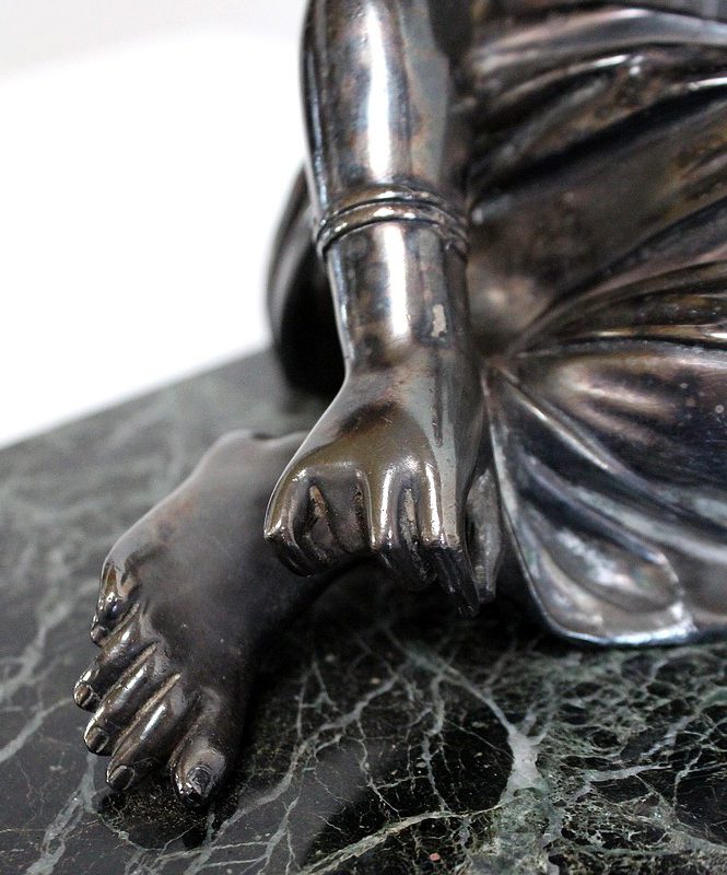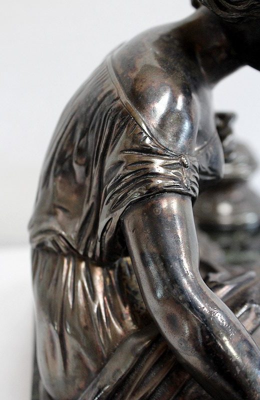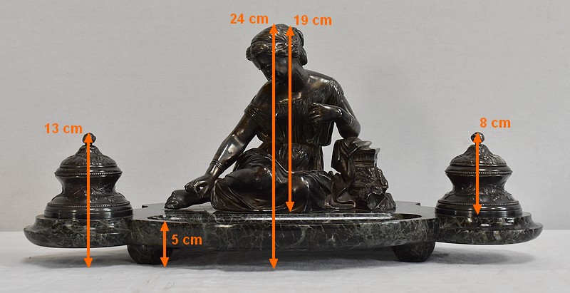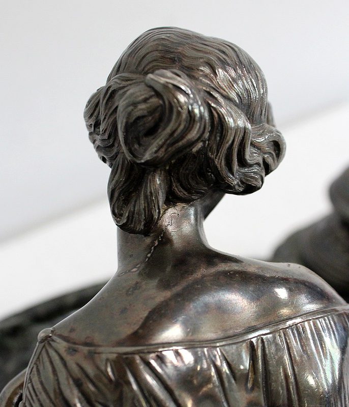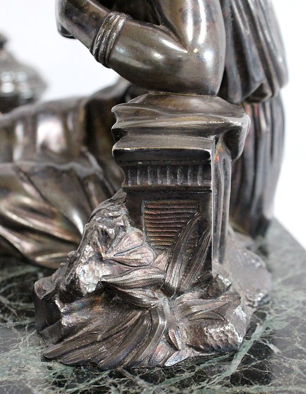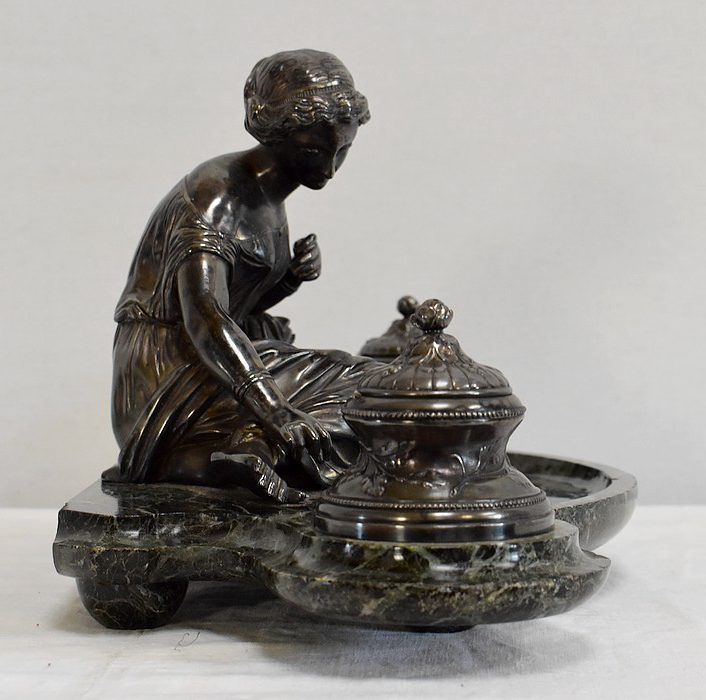 Encrier Double en Bronze argenté sur Marbre vert de mer – 1900