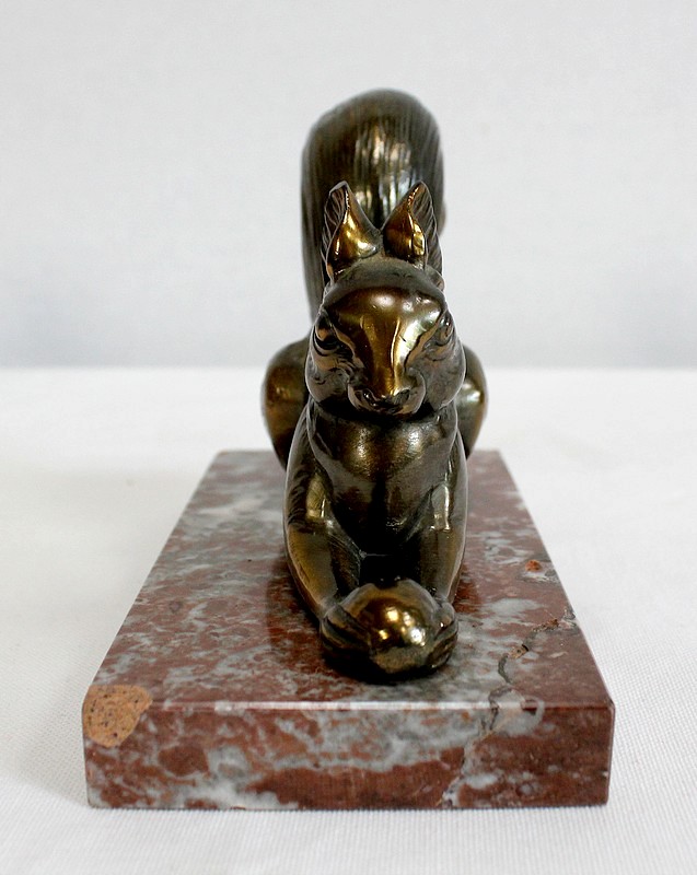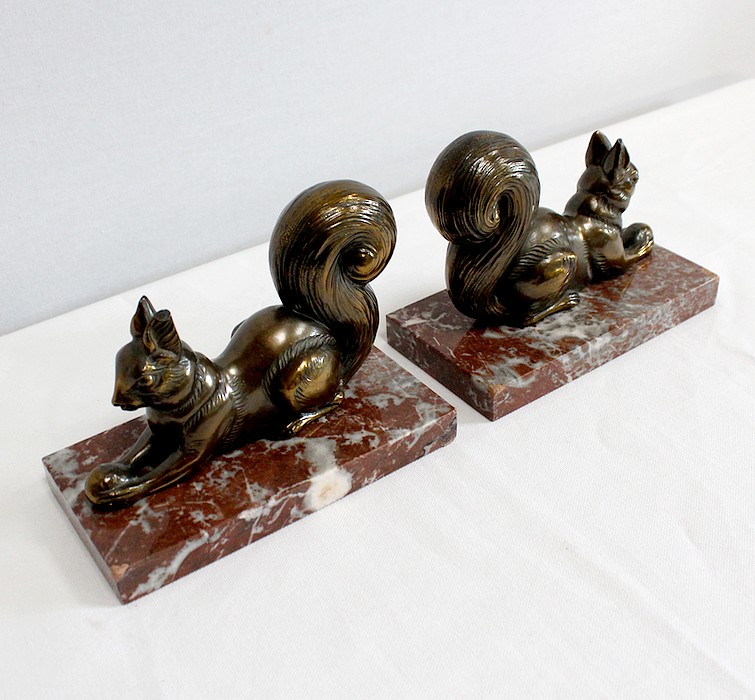 Paire de Serre-Livres « Écureuils » en Métal Doré – 1920