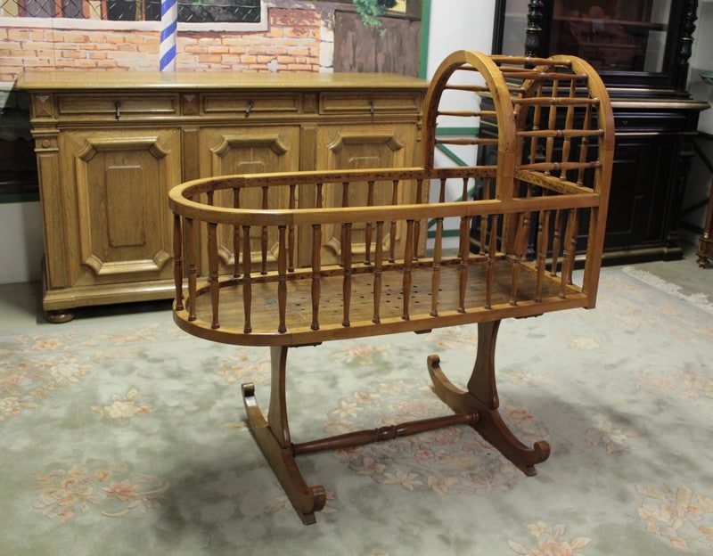 Joli berceau en merisier à décor de fusettes. Travail du Nord de la fin du XIXeme.