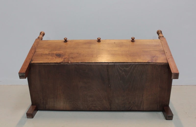 Berceau bas en merisier, en forme de pétrin, reposant sur 4 pieds droits.