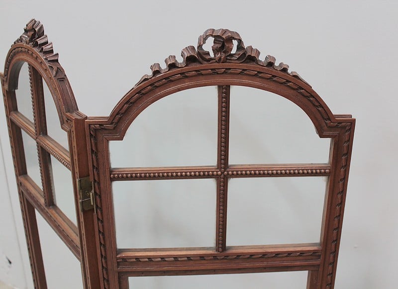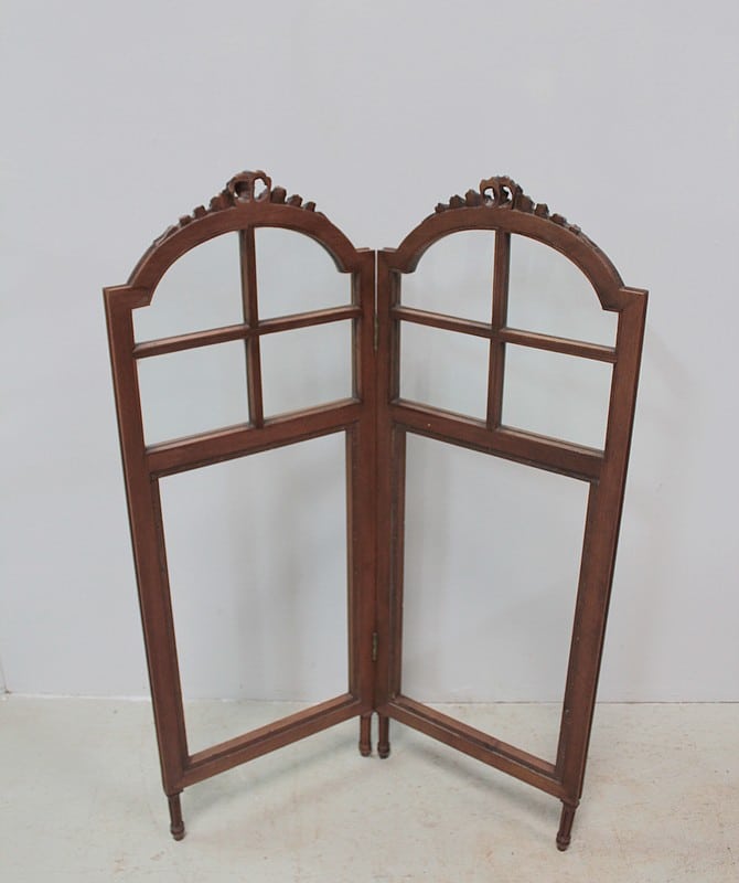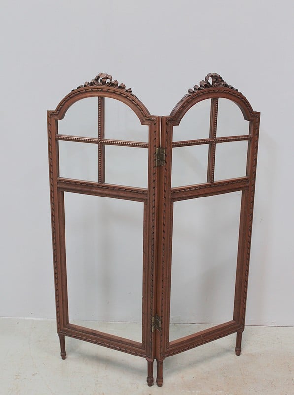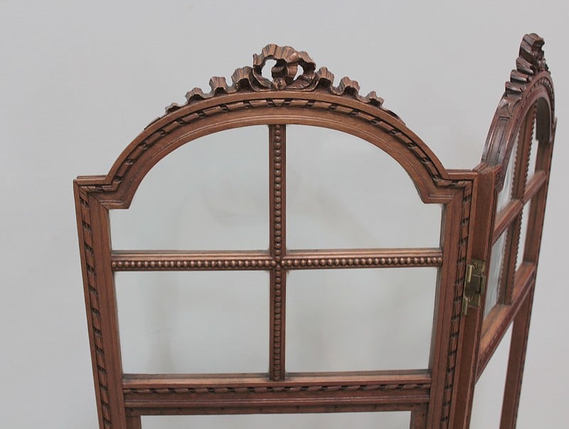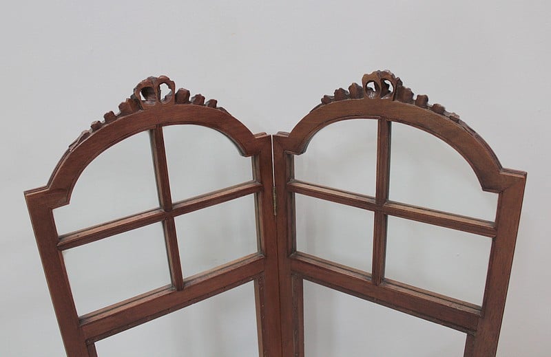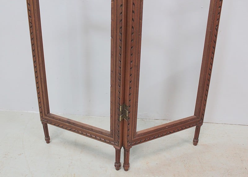 Petit paravent de chambre d’enfant à 2 vantaux en noyer, dans le goût Louis XVI.