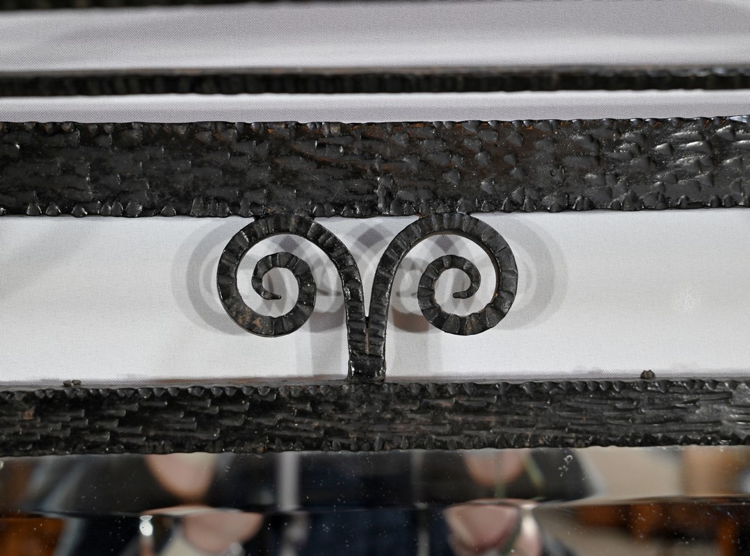 Deux patères à enroulement sont présentent en bas et de chaque côté.