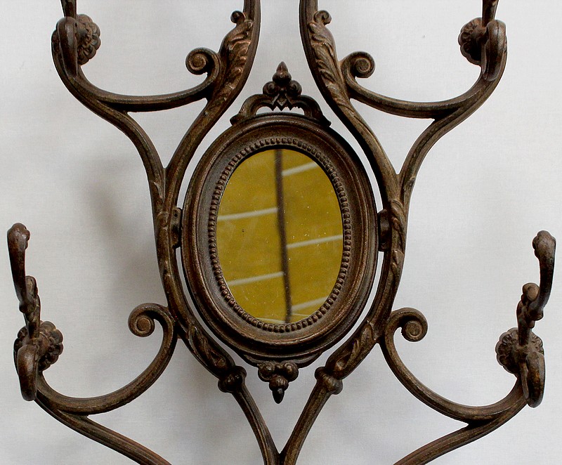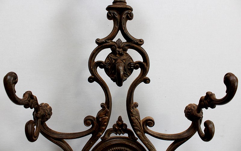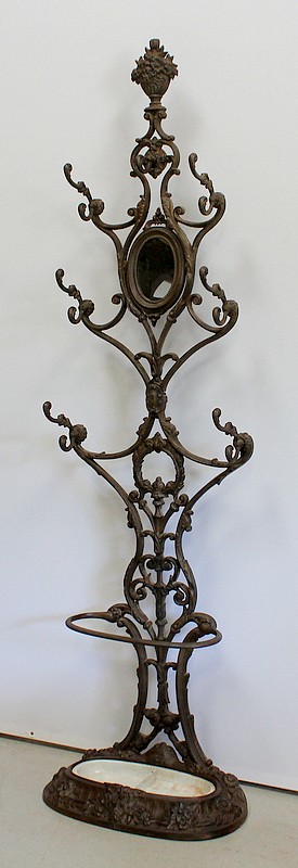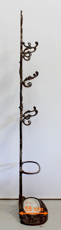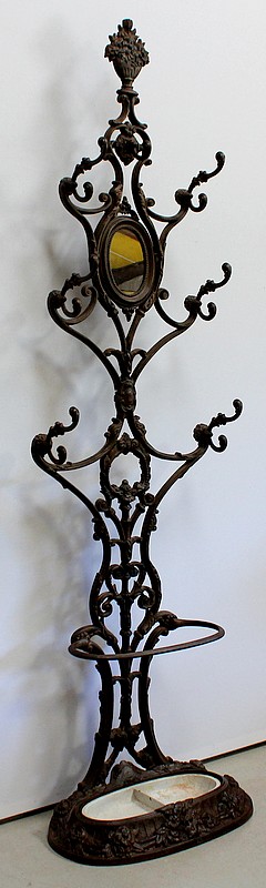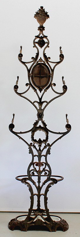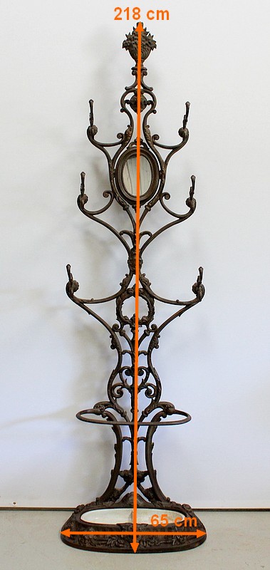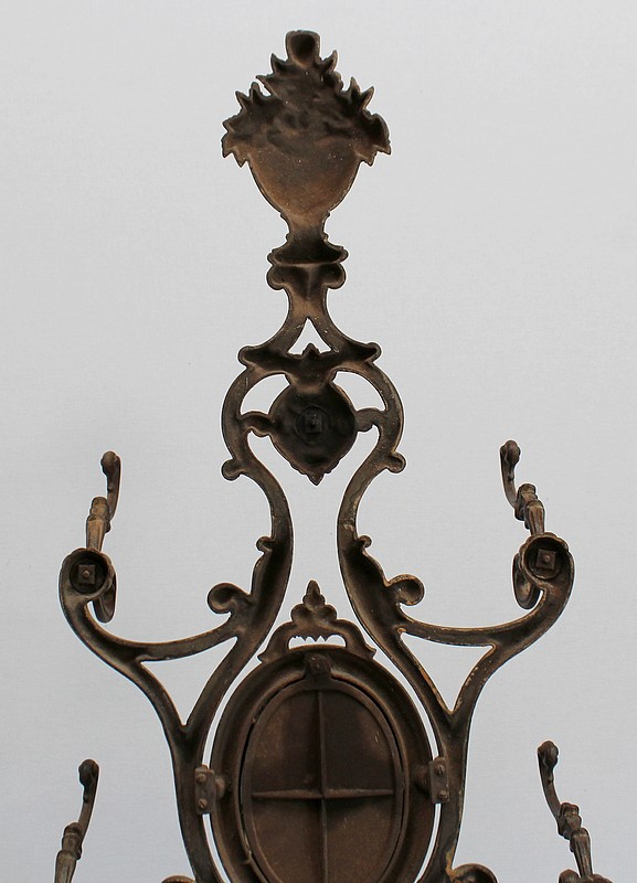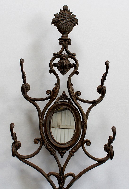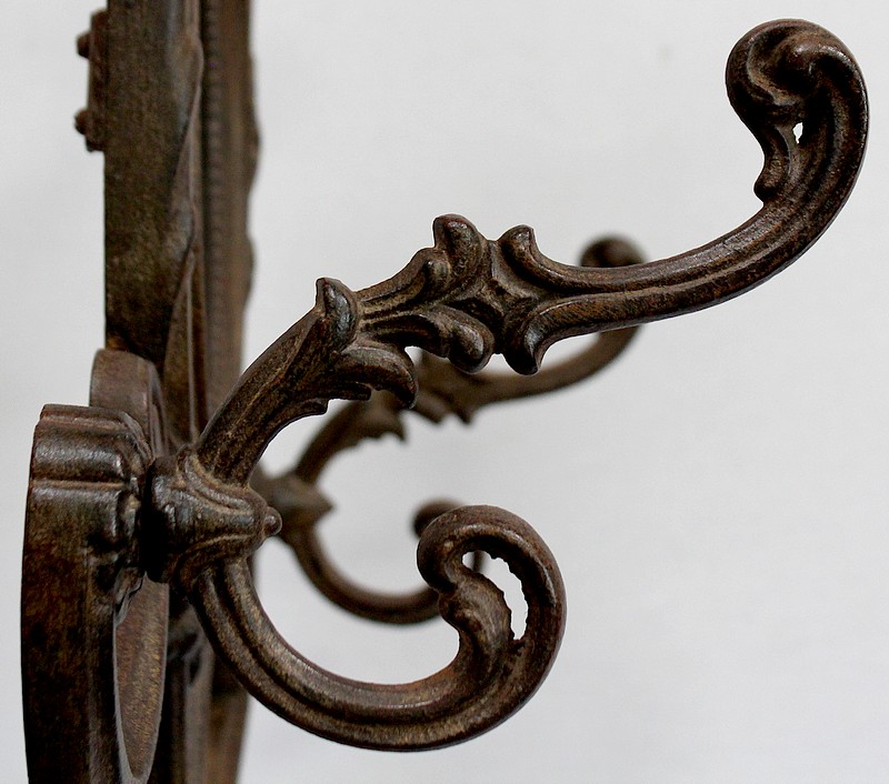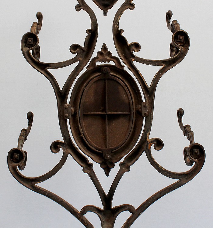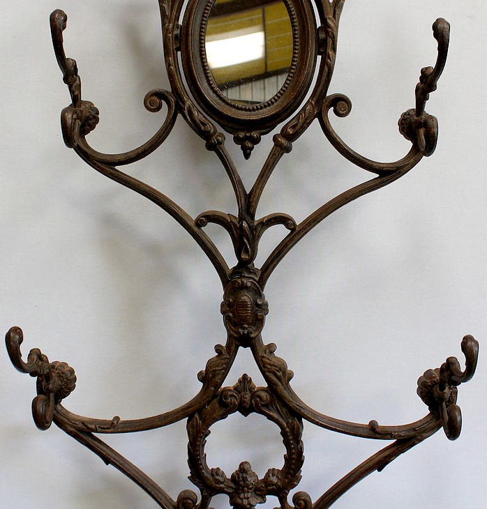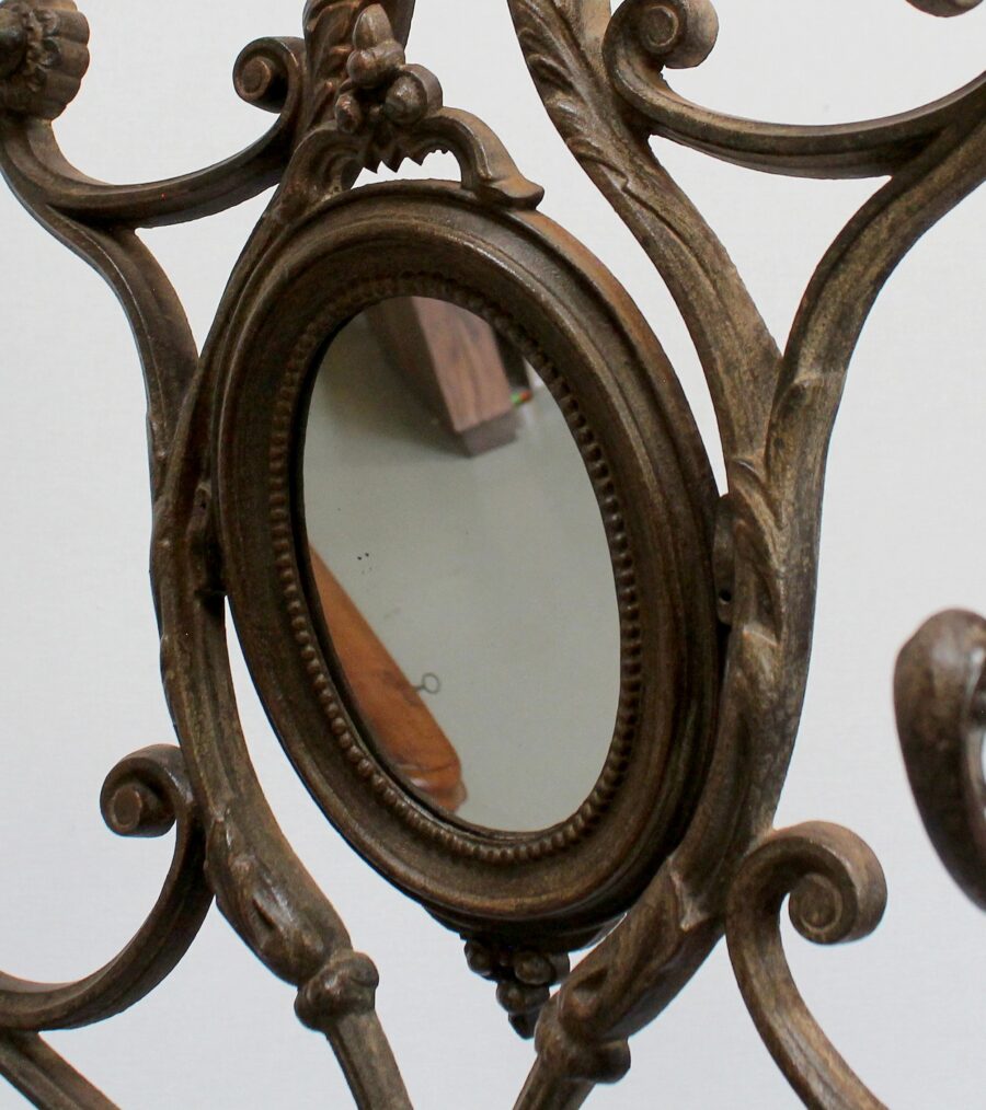 Grand Porte Manteau d’époque Art Nouveau en Fonte composé de sept patères et d’un Miroir, signé Alfred Corneau (1825-1886) Frères Charleville et portant le numéro 15.