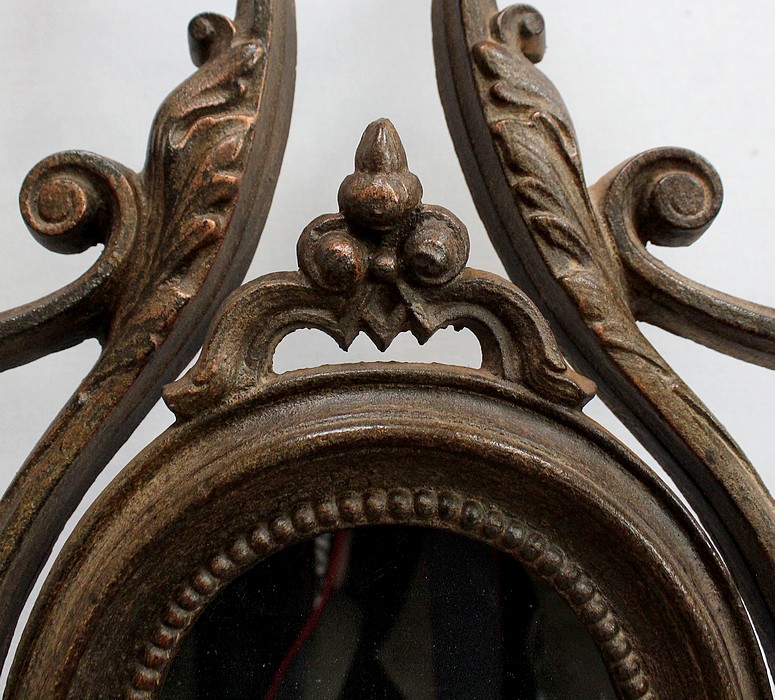 Au centre, un Miroir ovale entouré d’une Guirlande de perles s’incline à volonté.