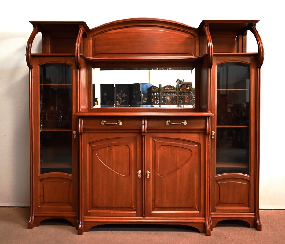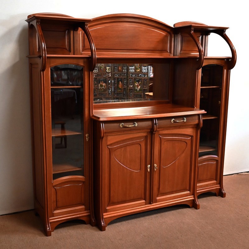 Buffet vitrine en acajou massif, attribué à la Maison Parisienne Édouard Diot.