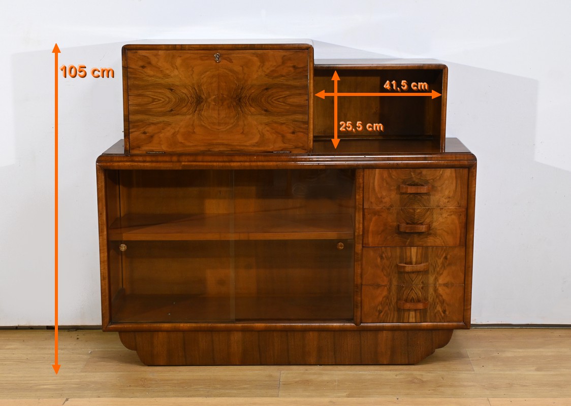 Ce meuble est un exemple parfait du style Art Déco, alliant fonctionnalité et esthétique, et il représente une pièce de collection précieuse pour les amateurs de mobilier vintage.