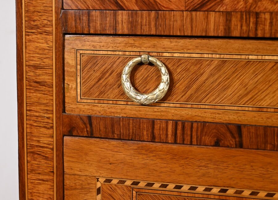 Les montants droits sont en placage horizontal de bois de rose.