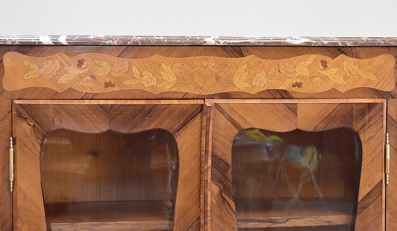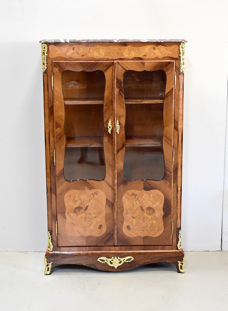Petite bibliothèque de style Transition Louis XV – Louis XVI en marquèterie de Palissandre et de Bois de Rose.