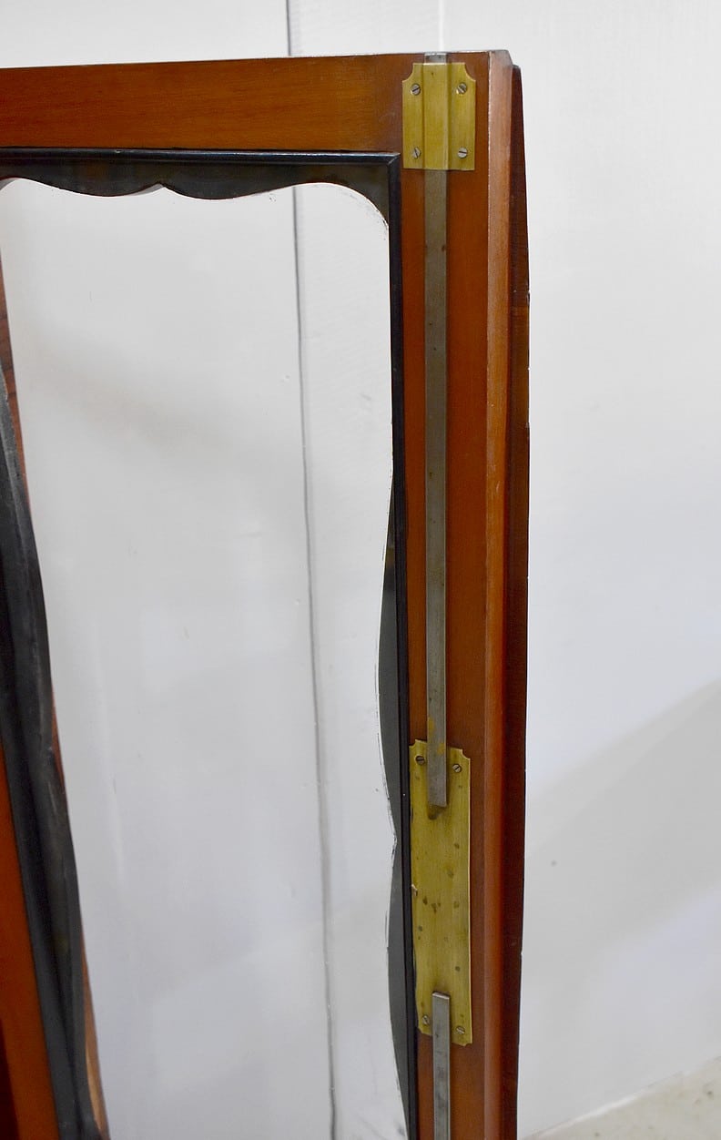 L’intérieur est garni de 3 étagères posées sur tasseaux amovibles sur crémaillères. Les montants biseautés sont ornés de chutes de bronzes en partie haute.
