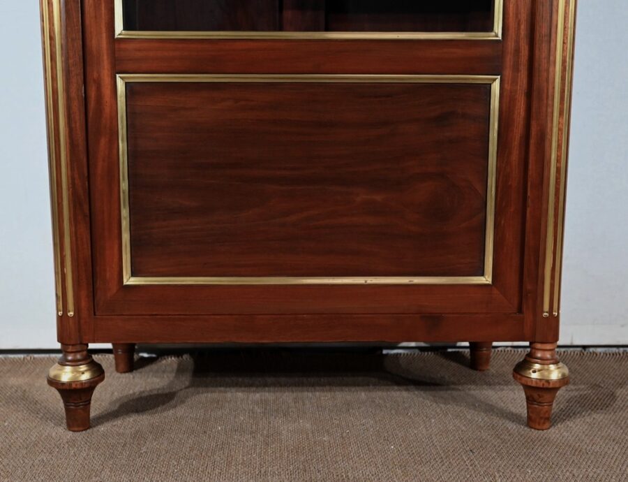 Les côtés de cette vitrine sont composés chacun d’un seul panneau avec baguettes laiton et d’un cadre à coupe d’onglet.