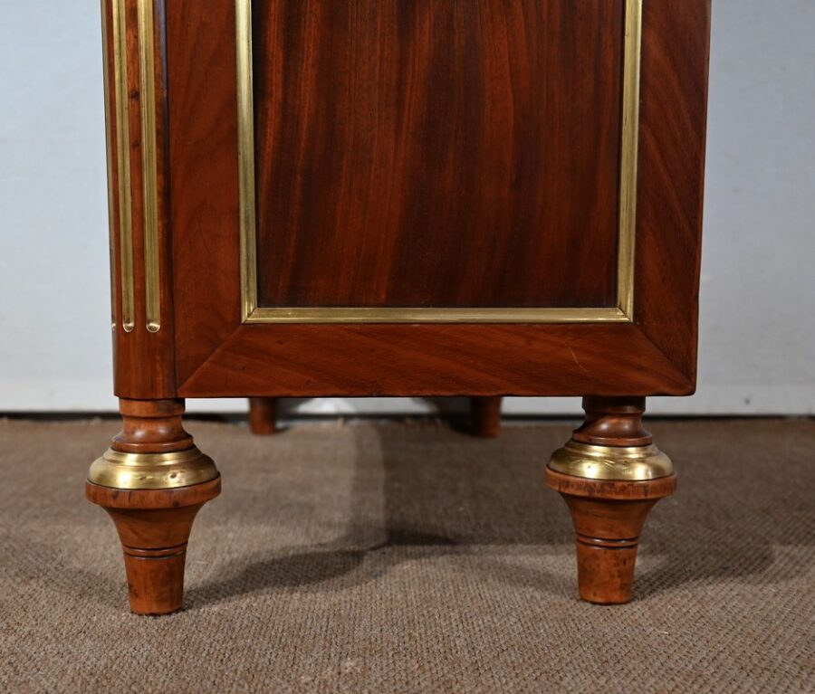 Les montants avant, en demi-colonnes attachées, sont garnis de trois cannelures arrêtées en laiton.