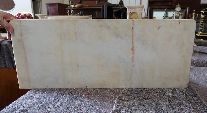 Un superbe marbre blanc subtilement veiné est disposé sur le dessus et mis en valeur par une baguette de bronze.