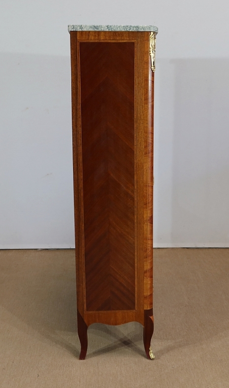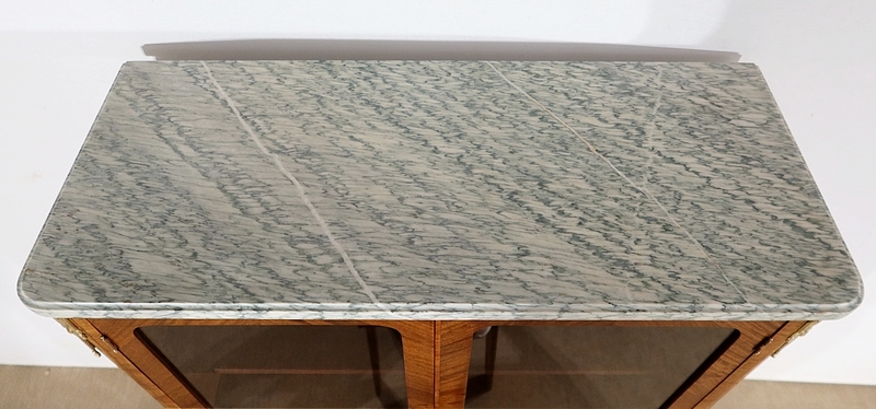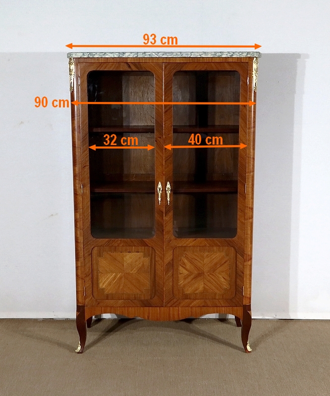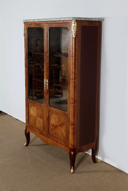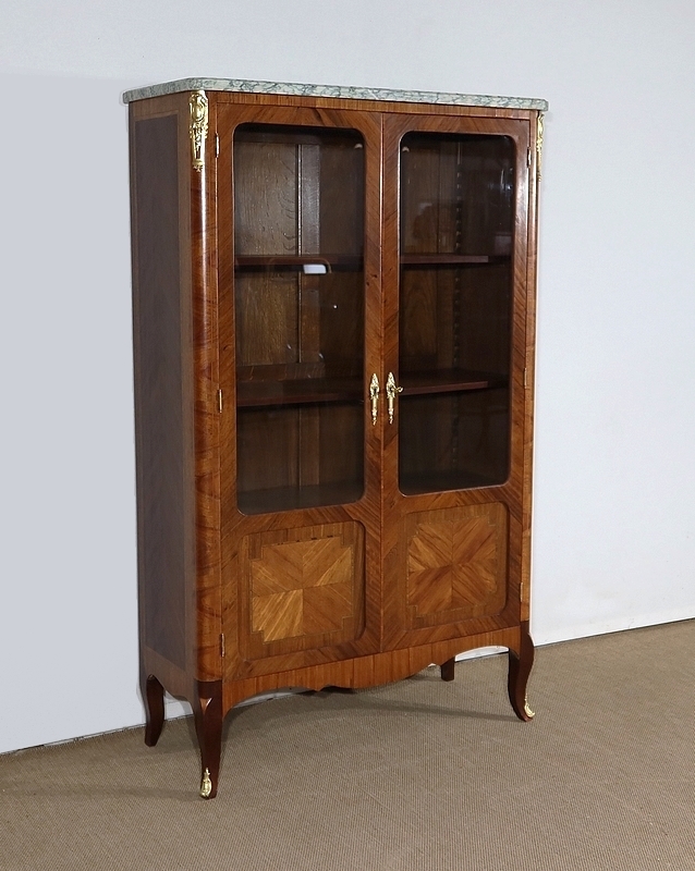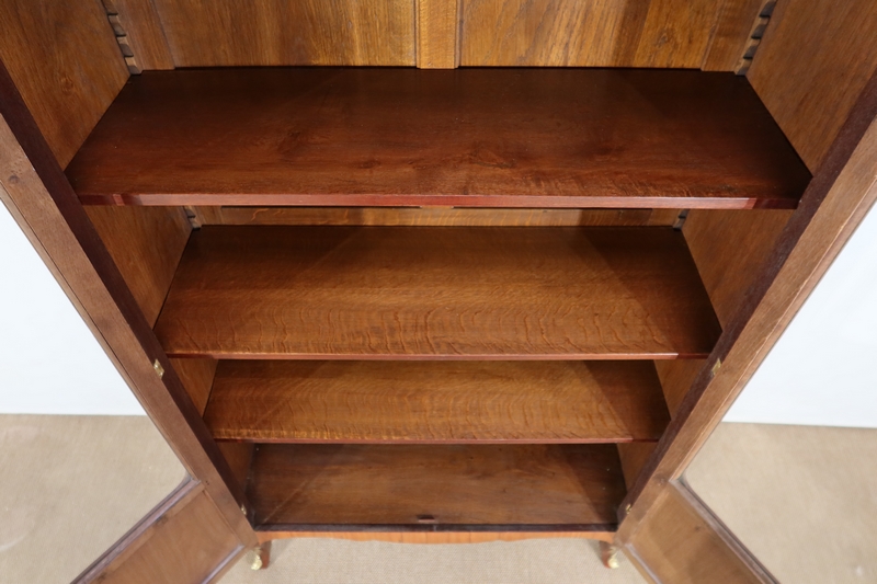Élégante vitrine Transition composée de placages d’acajou, de bois de rose et citronnier.