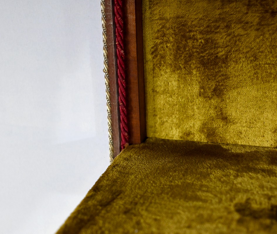 L’intérieur est habillé d’un velours d’origine vert scintillant en excellent état.