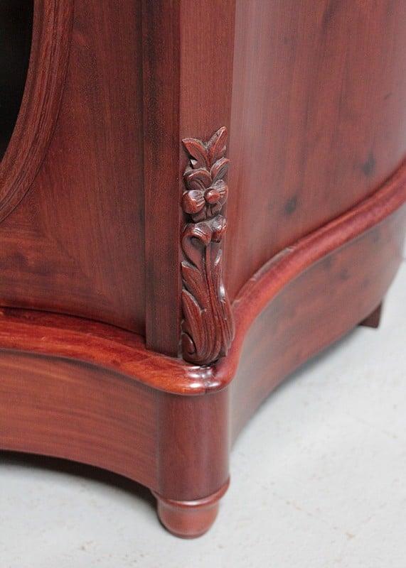 Vitrine basse NAPOLÉON III en placage d’acajou à façade mouvementée et ouvrant par deux portes avec vitres ovales.