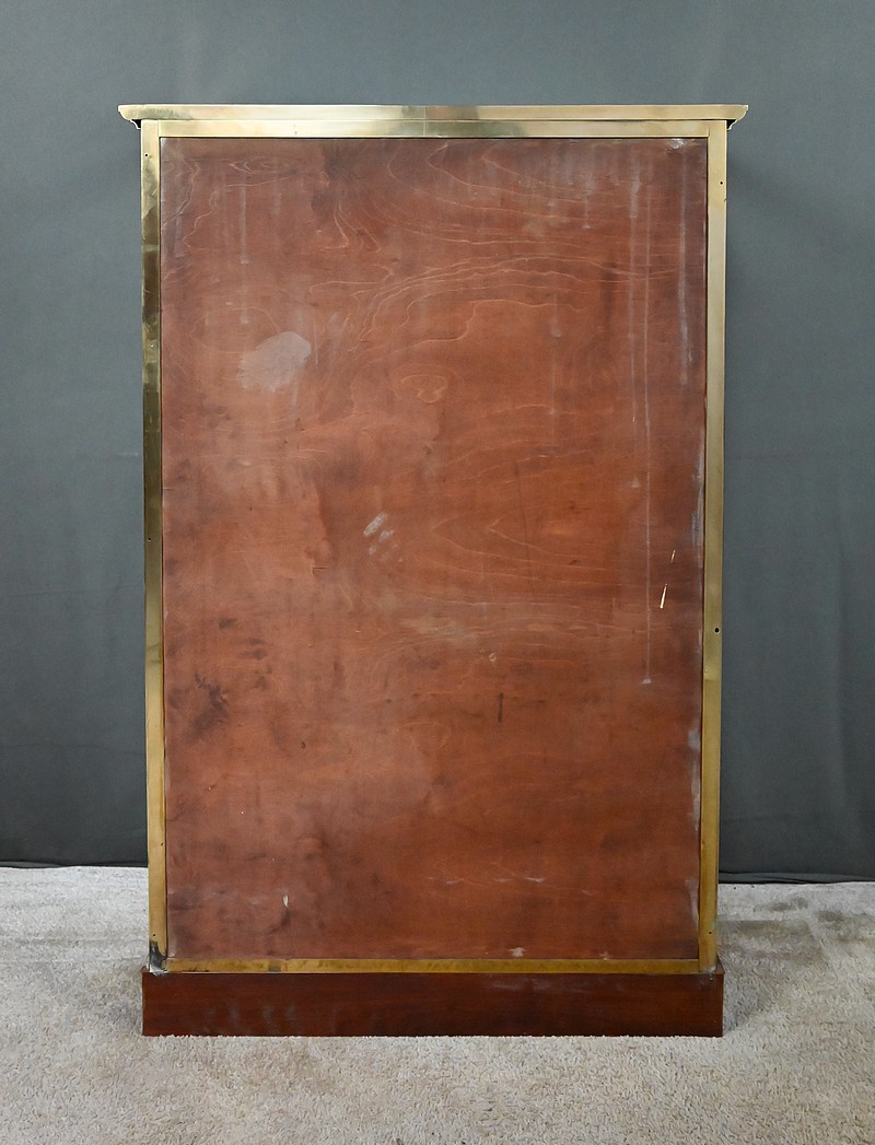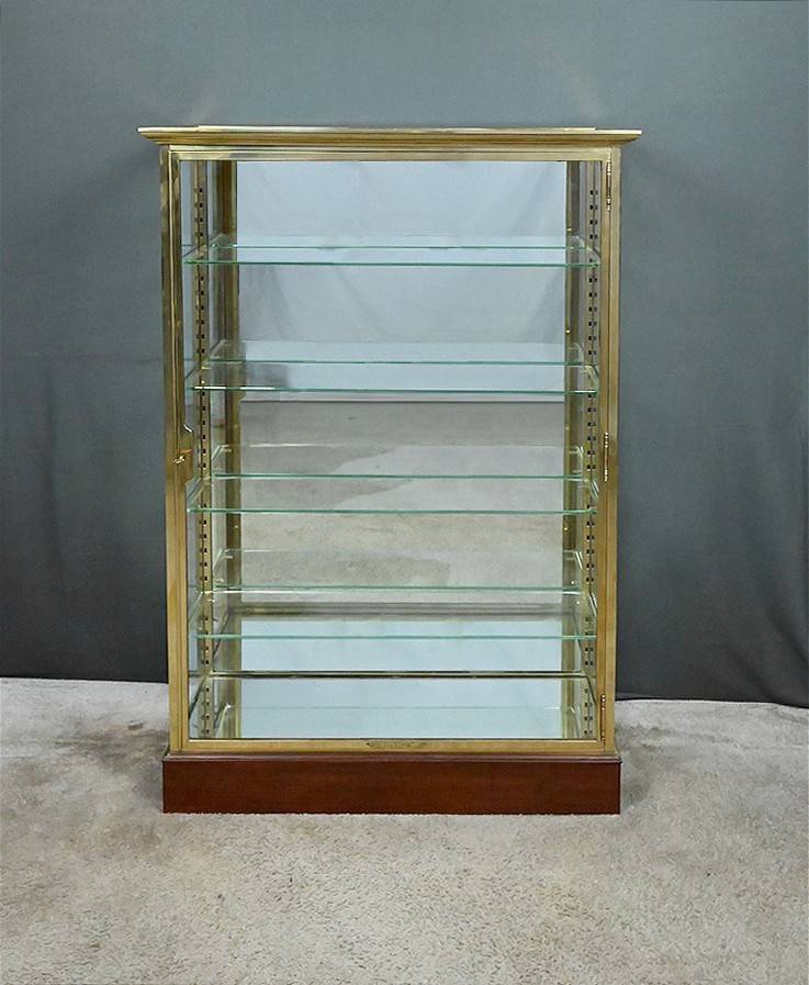 Sublime vitrine en laiton ouvrant par une porte vitrée montée sur gonds, équipée de sa serrure d’origine parfaitement fonctionnelle et accompagnée de sa clé. La finition de ce mobilier témoigne du soin apporté à sa fabrication et il est important de souligner la qualité de son état de conservation.