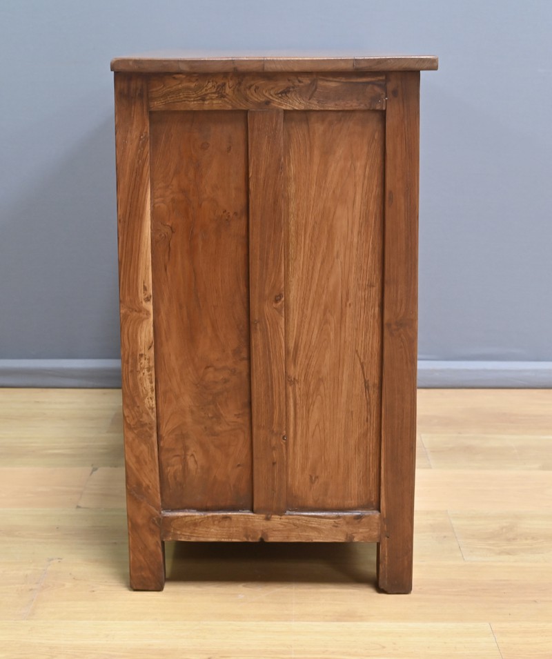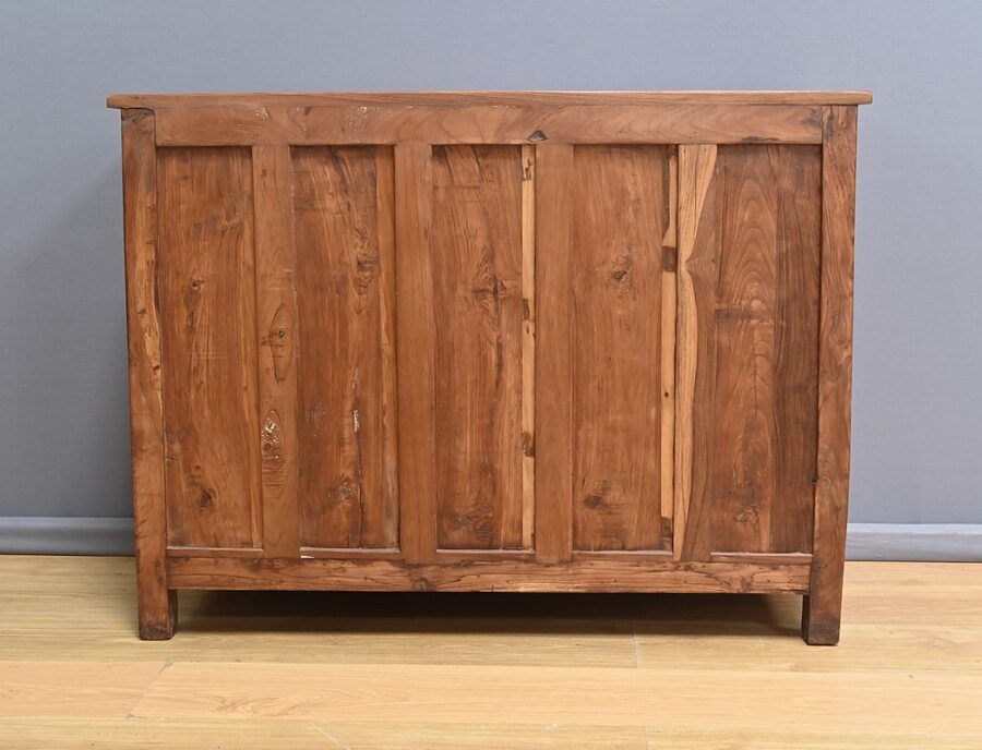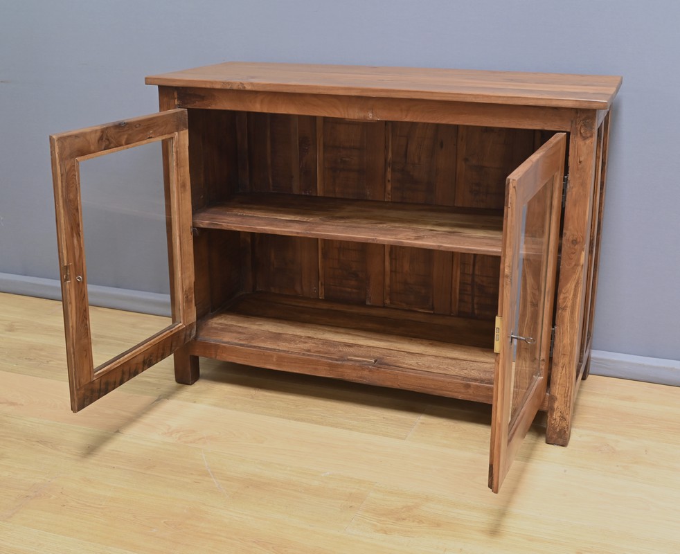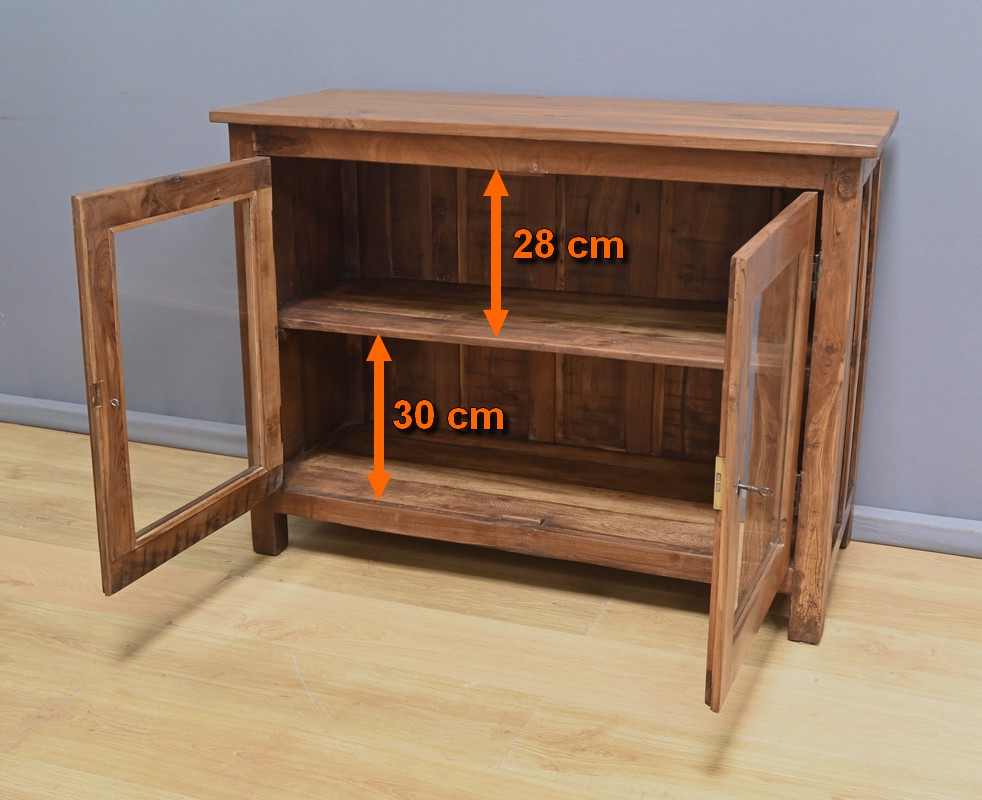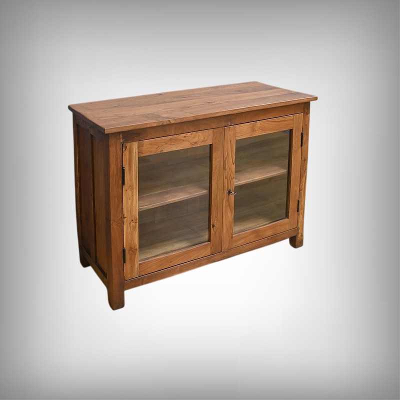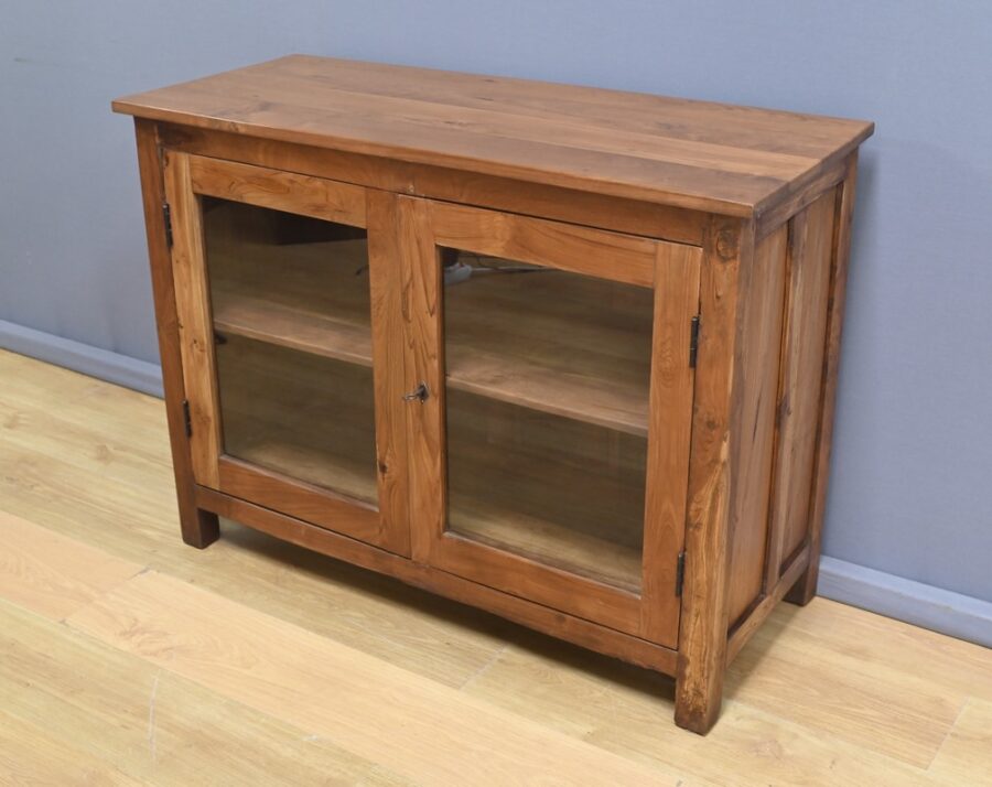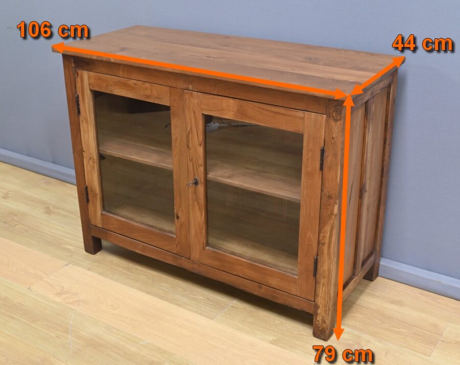 Ajoutez une touche d’authenticité à votre intérieur avec cette vitrine en teck massif, fabriquée en Inde au début du XXe siècle. Bois noble et intemporel : le teck massif, reconnu pour sa robustesse et sa beauté naturelle, confère à cette pièce un charme unique et une grande durabilité. Optez pour un meuble de rangement fonctionnel : doté de deux portes vitrées équipées d’une serrure avec clé, il permet de mettre en valeur vos objets tout en les protégeant. Son intérieur comprend une étagère qui divise l’espace en deux niveaux, idéal pour organiser vos divers articles. Véritable pièce de caractère, cette vitrine est parfaite pour les amateurs de mobiliers exotiques issu de l’artisanat indien.